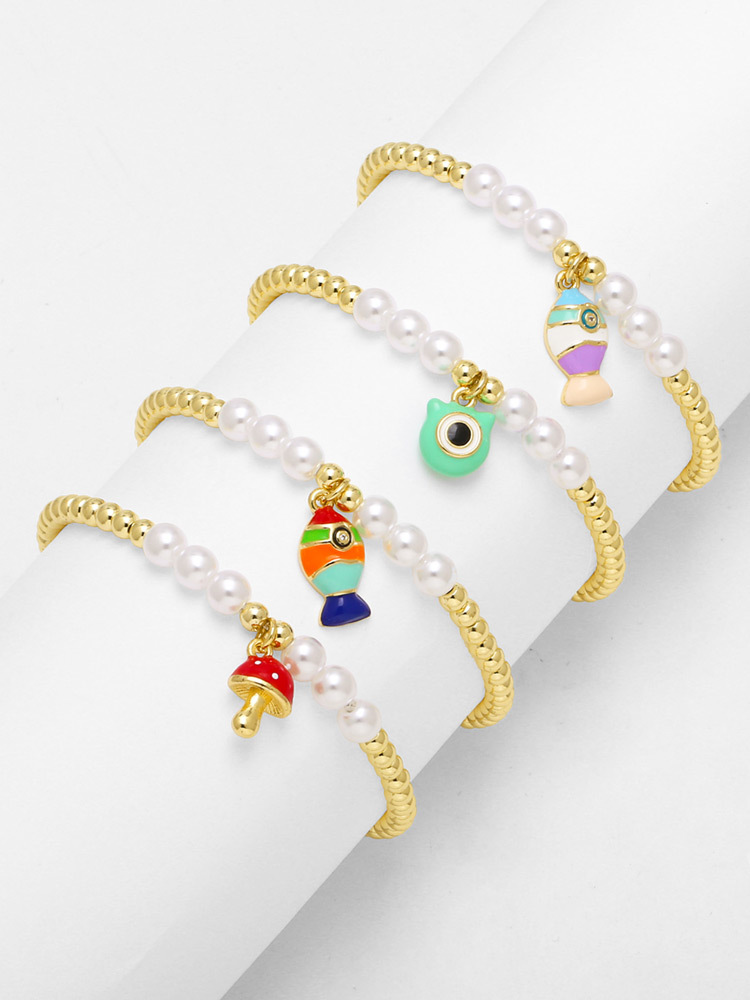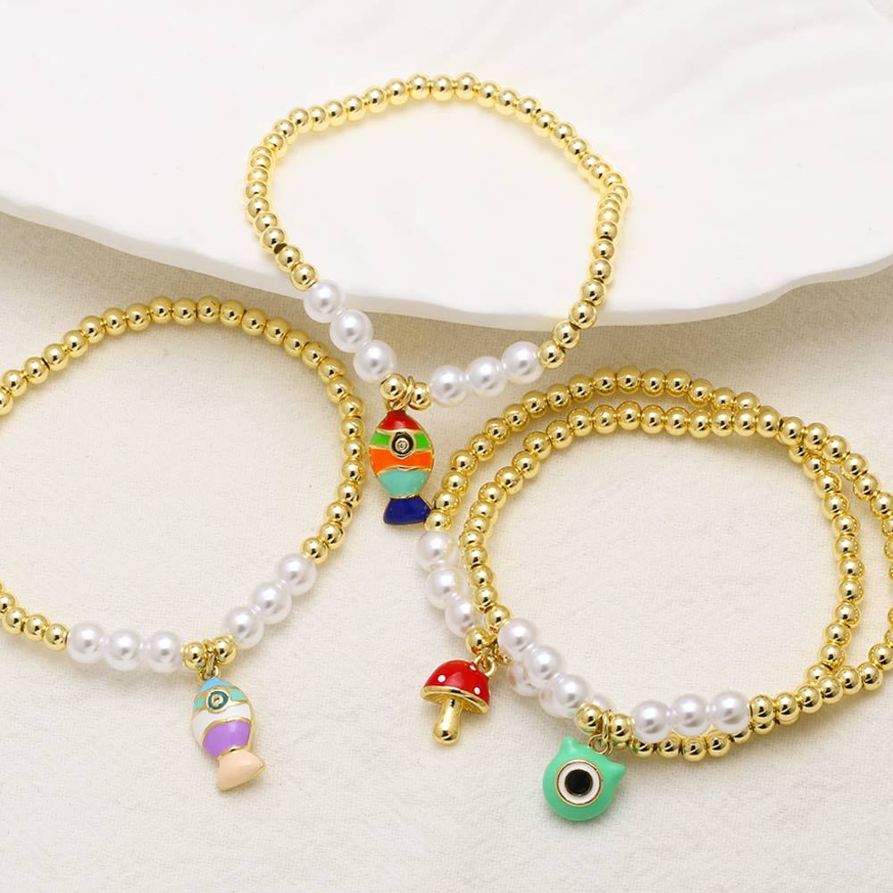 AS jewelry Europe and the United States hot selling pearl bracelet mushroom fish kitten pendant female bracelet gold-plated hand jewelry bra24