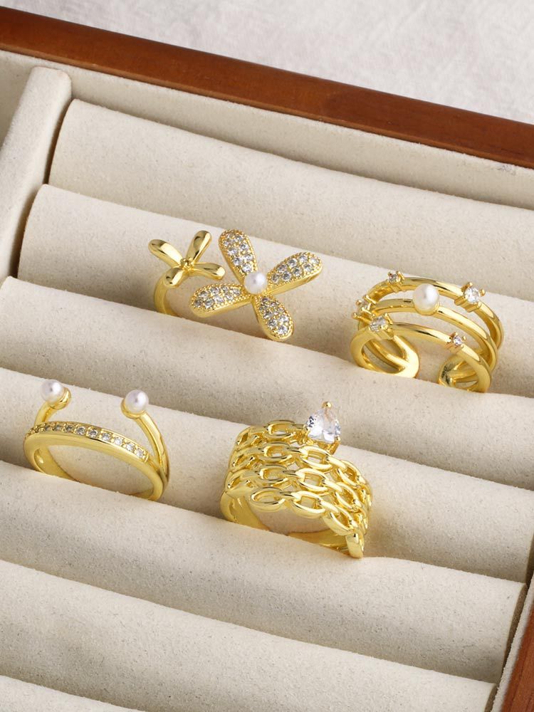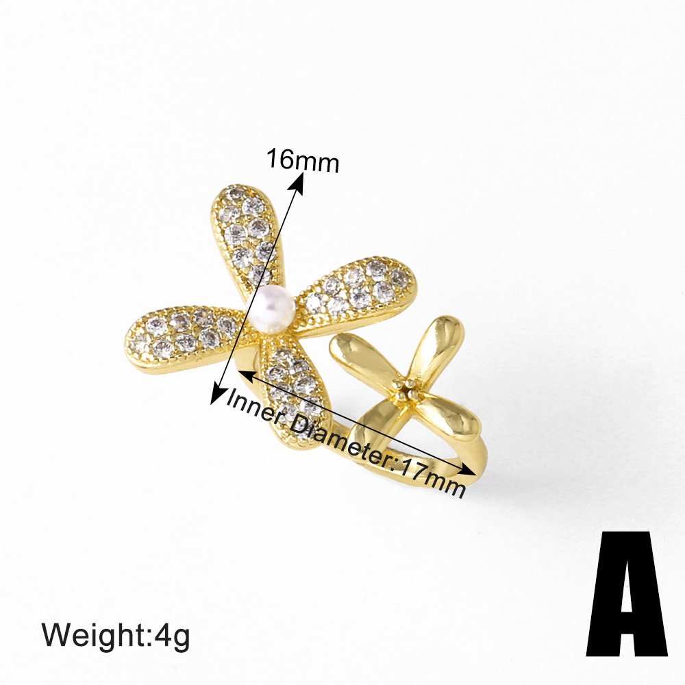 AS jewelry Europe and the United States hot selling pearl flower double layer ring female copper plated 18k gold new ring ris31