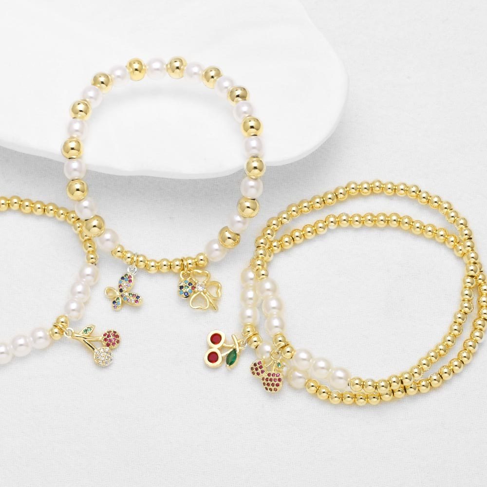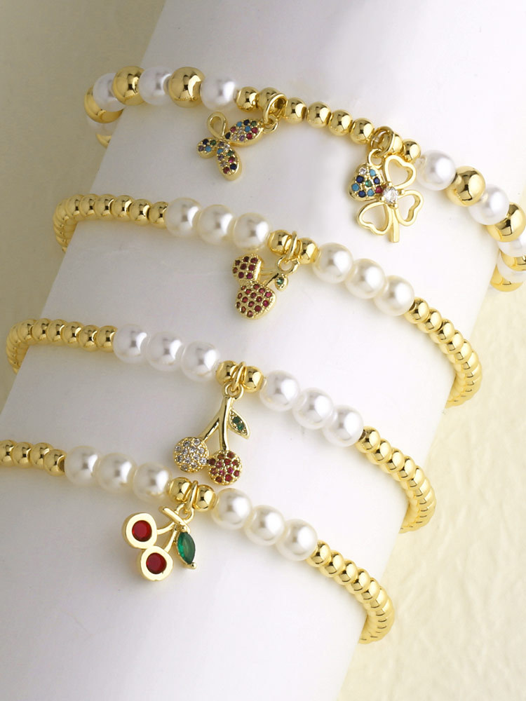 AS jewelry Europe and the United States hot selling pearl fruit cherry pendant bracelet female beaded gold-plated bracelet brk19