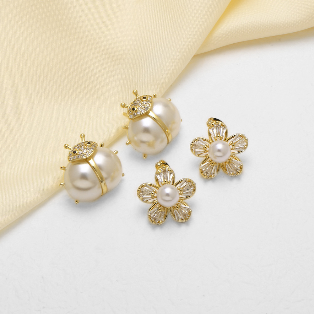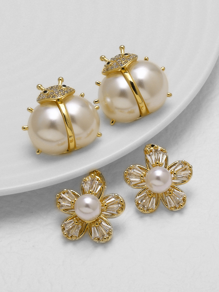 AS jewelry Europe and the United States hot selling pearl insect earrings copper plated 18k gold flower earrings earrings female erq17