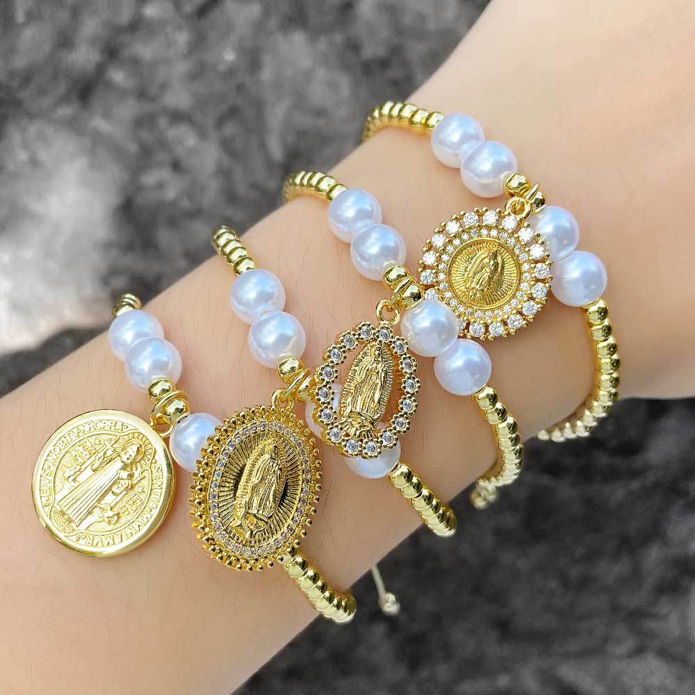 AS jewelry Europe and the United States hot selling pearl Virgin Mary bracelet female gold-plated beaded hand jewelry bracelet brc71