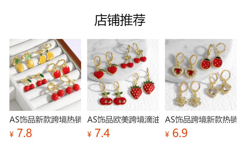 AS jewelry hot selling copper plated real gold oil drop fruit strawberry mushroom earrings earrings ers75