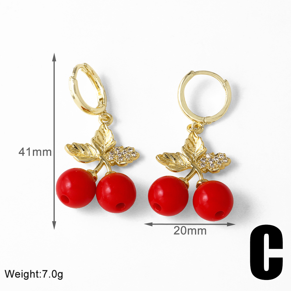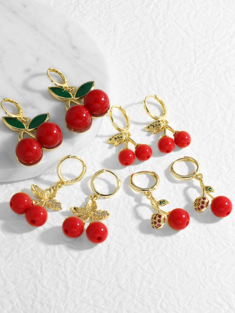 AS jewelry European and American new hot selling fruit cherry copper plated 18k gold earrings earrings female ers28 ring