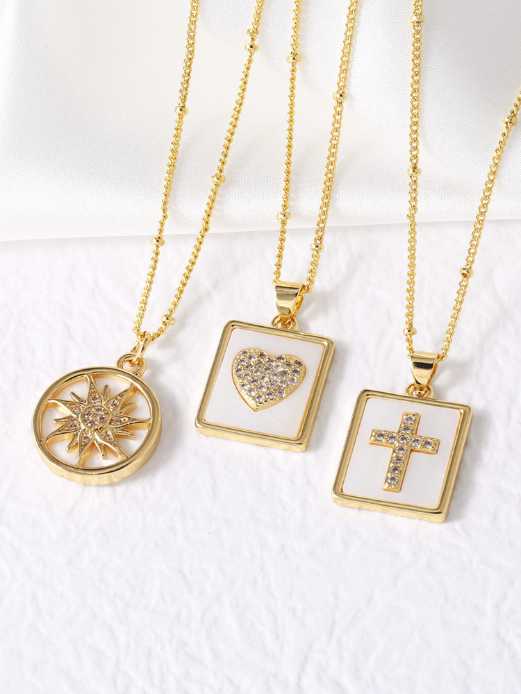 AS jewelry Europe and the United States hot selling shell cross heart pendant necklace copper plated 18k gold clavicle chain nks48