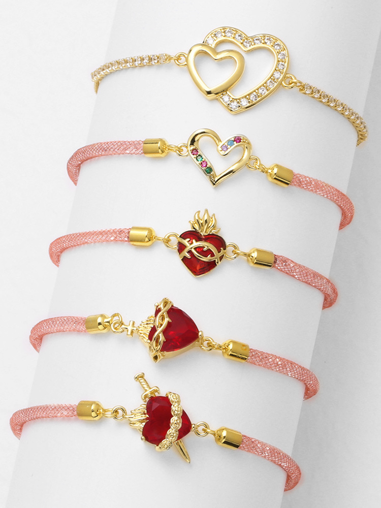 AS jewelry Europe and the United States hot selling Valentine's Day love heart pendant copper plated real gold hand jewelry bracelet female bre24