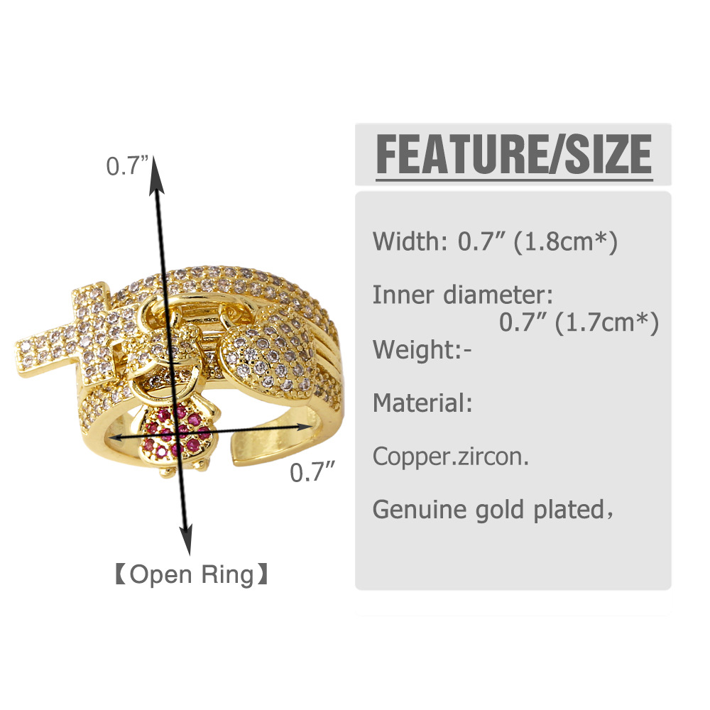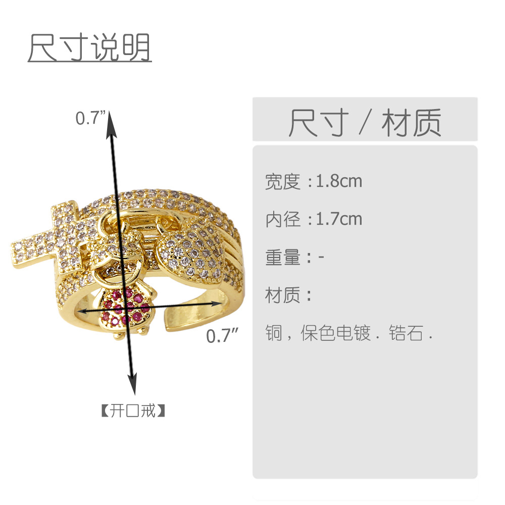 AS jewelry European and American boys and girls pendant ring gold-plated zircon inlaid love cross ring rim76