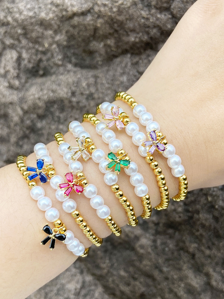 AS jewelry European and American butterfly pendant bracelet female copper plated real gold inlaid colored zircon bracelet hand jewelry brd66