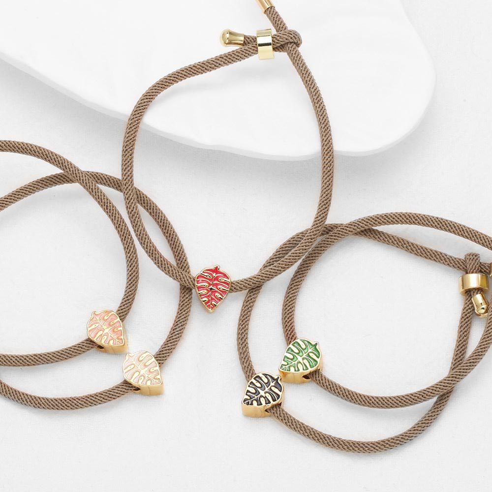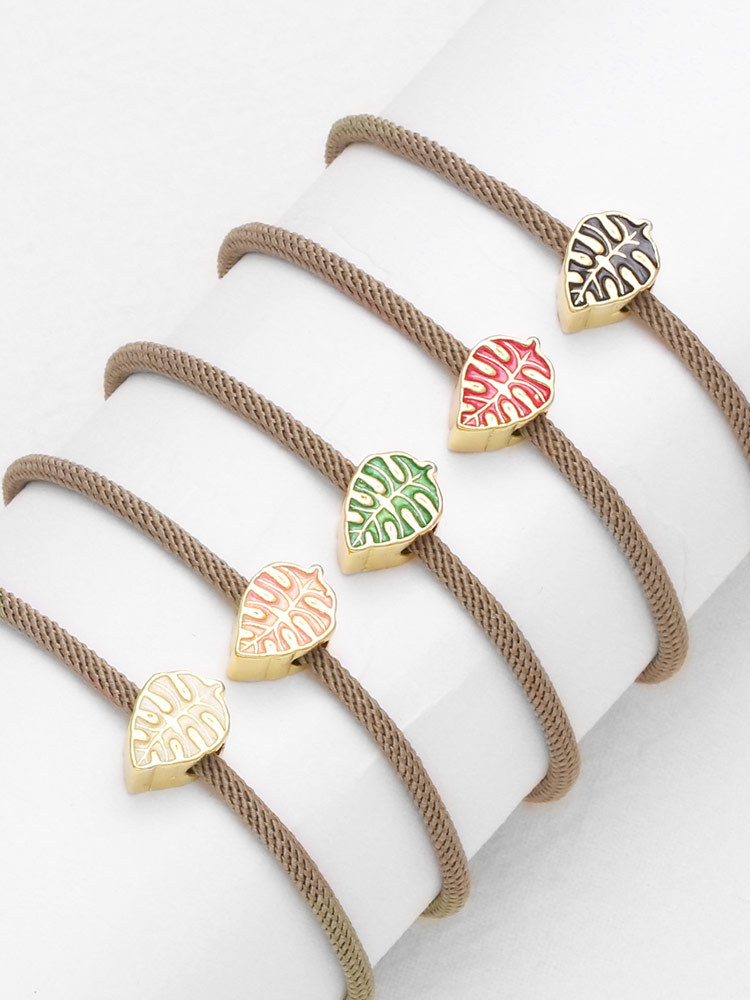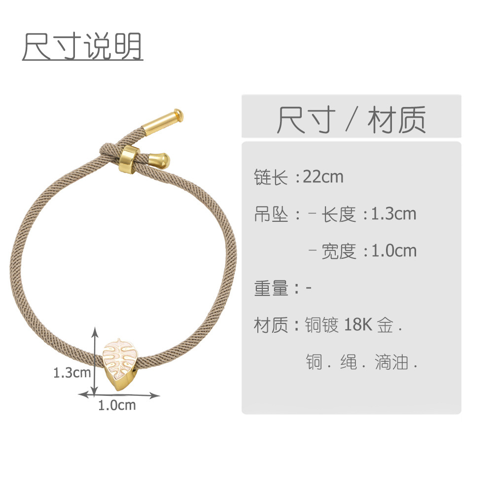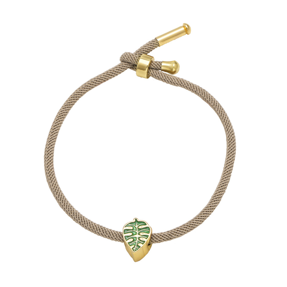 AS jewelry European and American colored leaf pendant bracelet copper plated 18k gold adjustable hand rope hand jewelry female brk94
