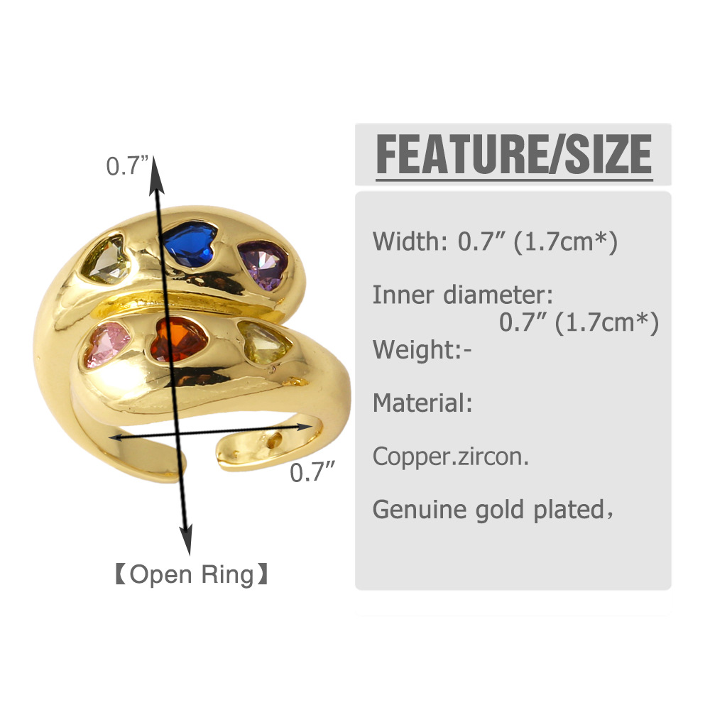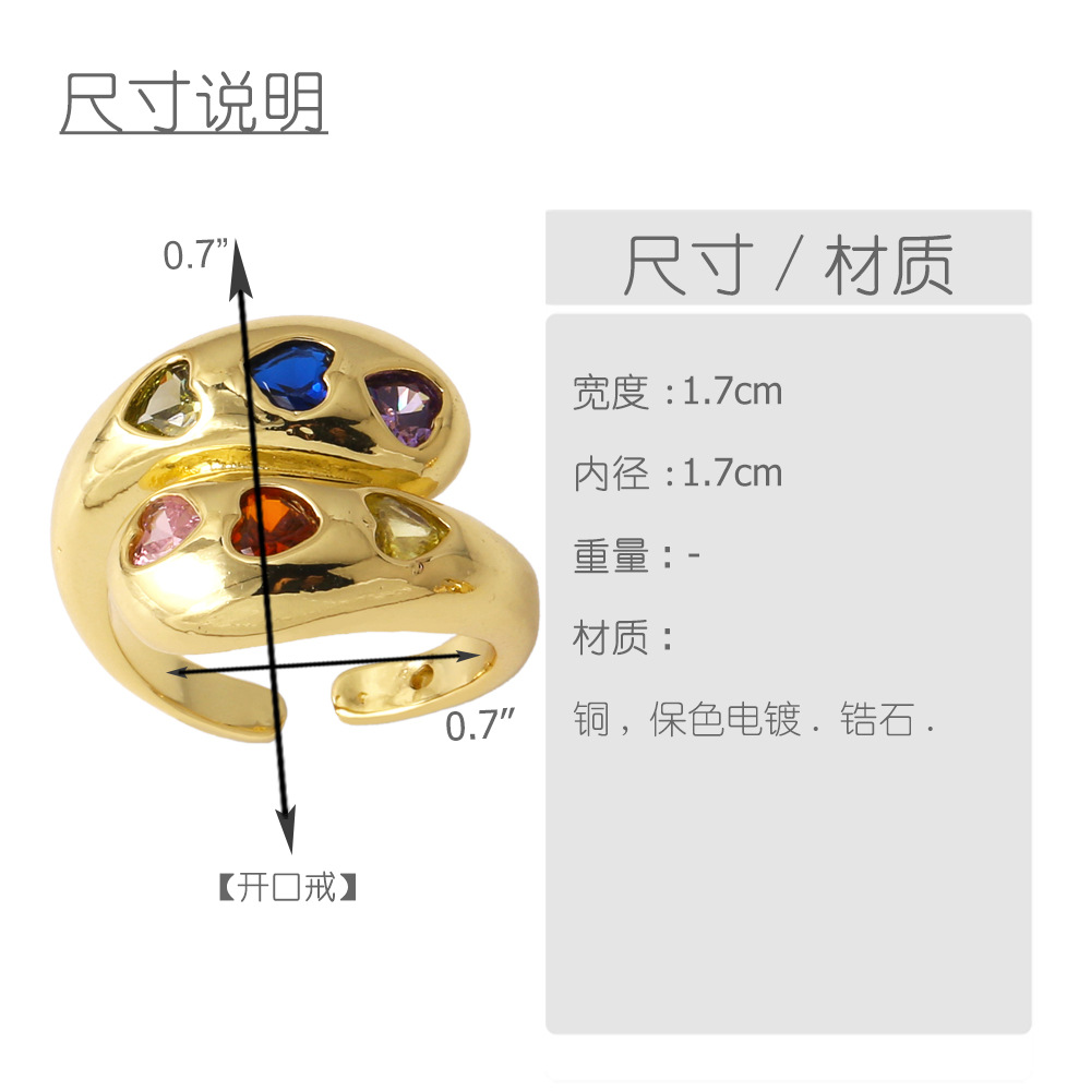 AS jewelry European and American colored zircon love ring gold-plated high-grade irregular open ring rim72