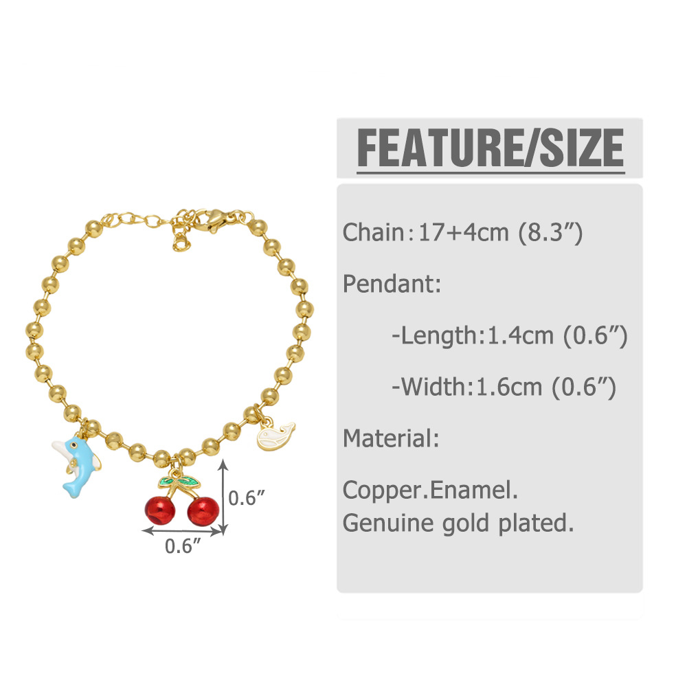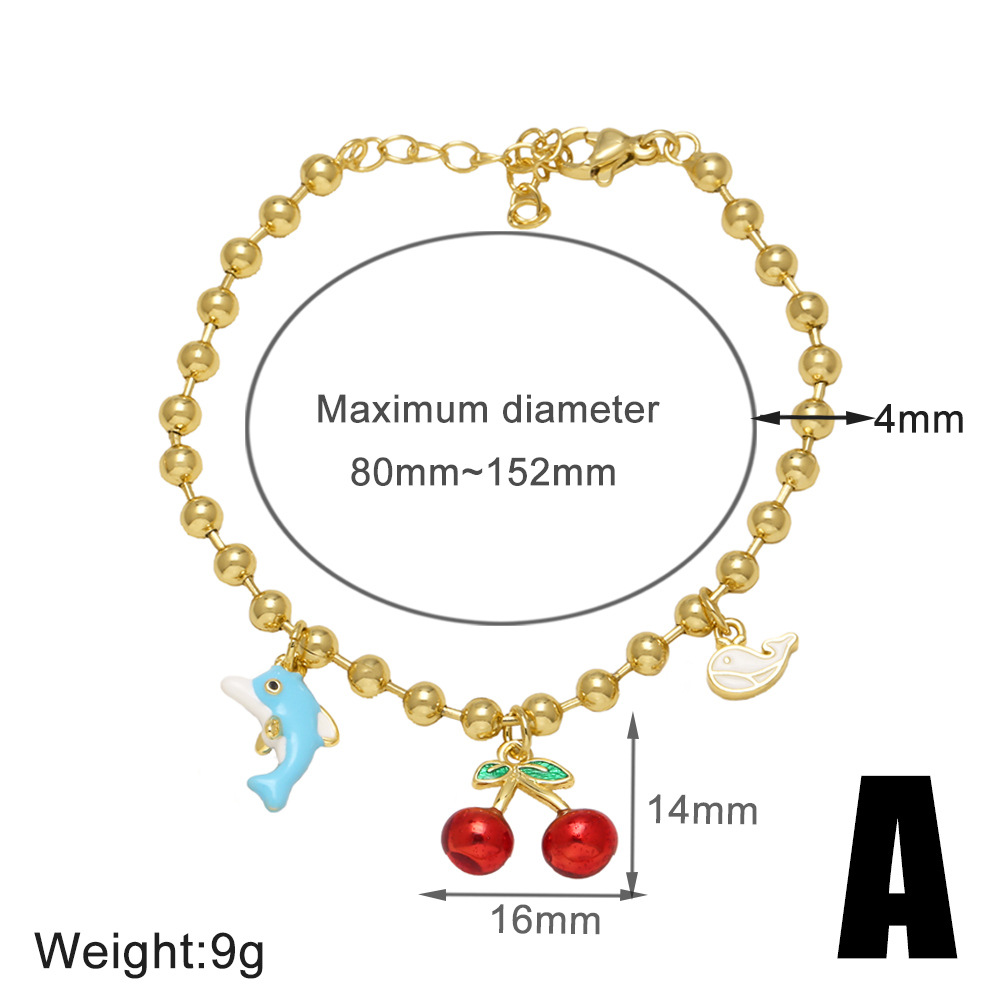 AS jewelry European and American copper plated 18k gold fruit cherry dolphin beaded bracelet brf94 bracelet