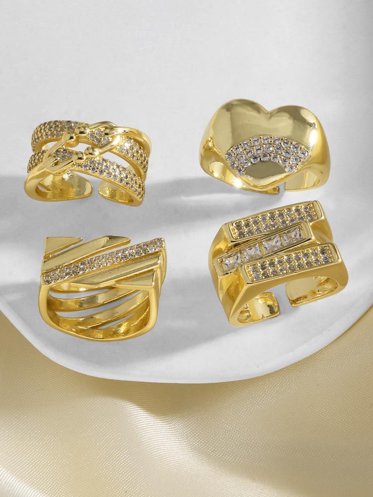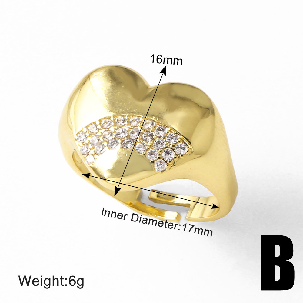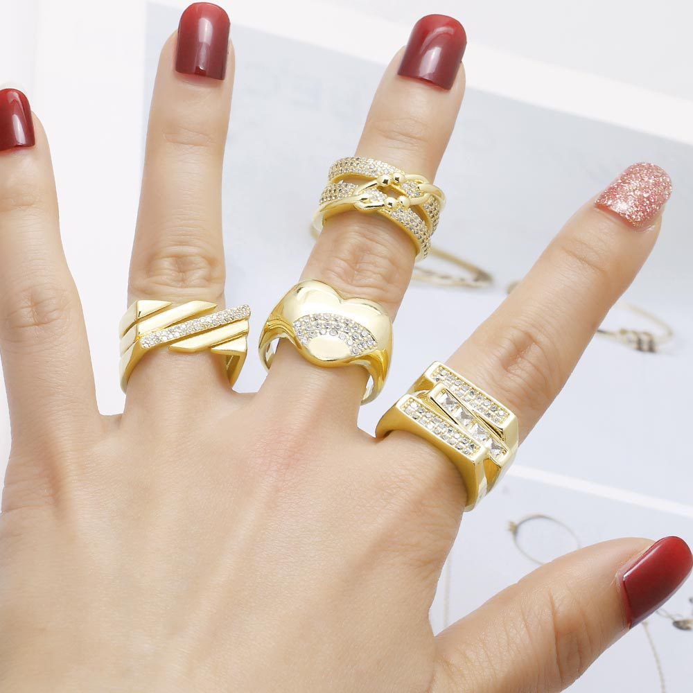 AS jewelry European and American copper plated 18K gold zircon ring love heart-shaped irregular open ring ris72