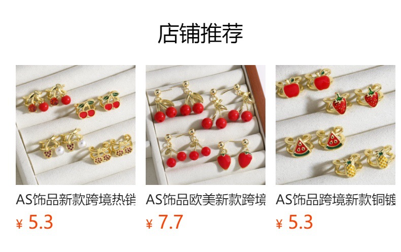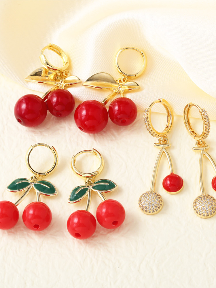 AS jewelry European and American new hot selling fruit cherry copper plated 18k gold earrings earrings female ers28 ring