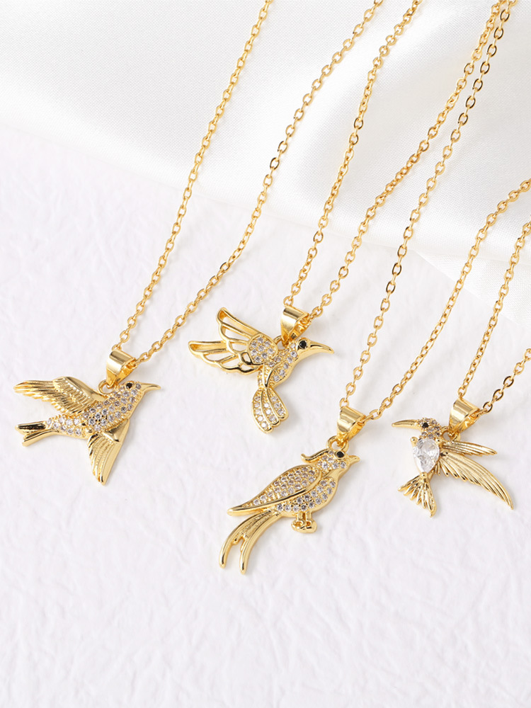 AS jewelry European and American copper plated real gold full zircon bird pendant necklace clavicle chain nkt01 necklace