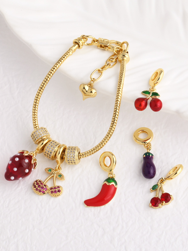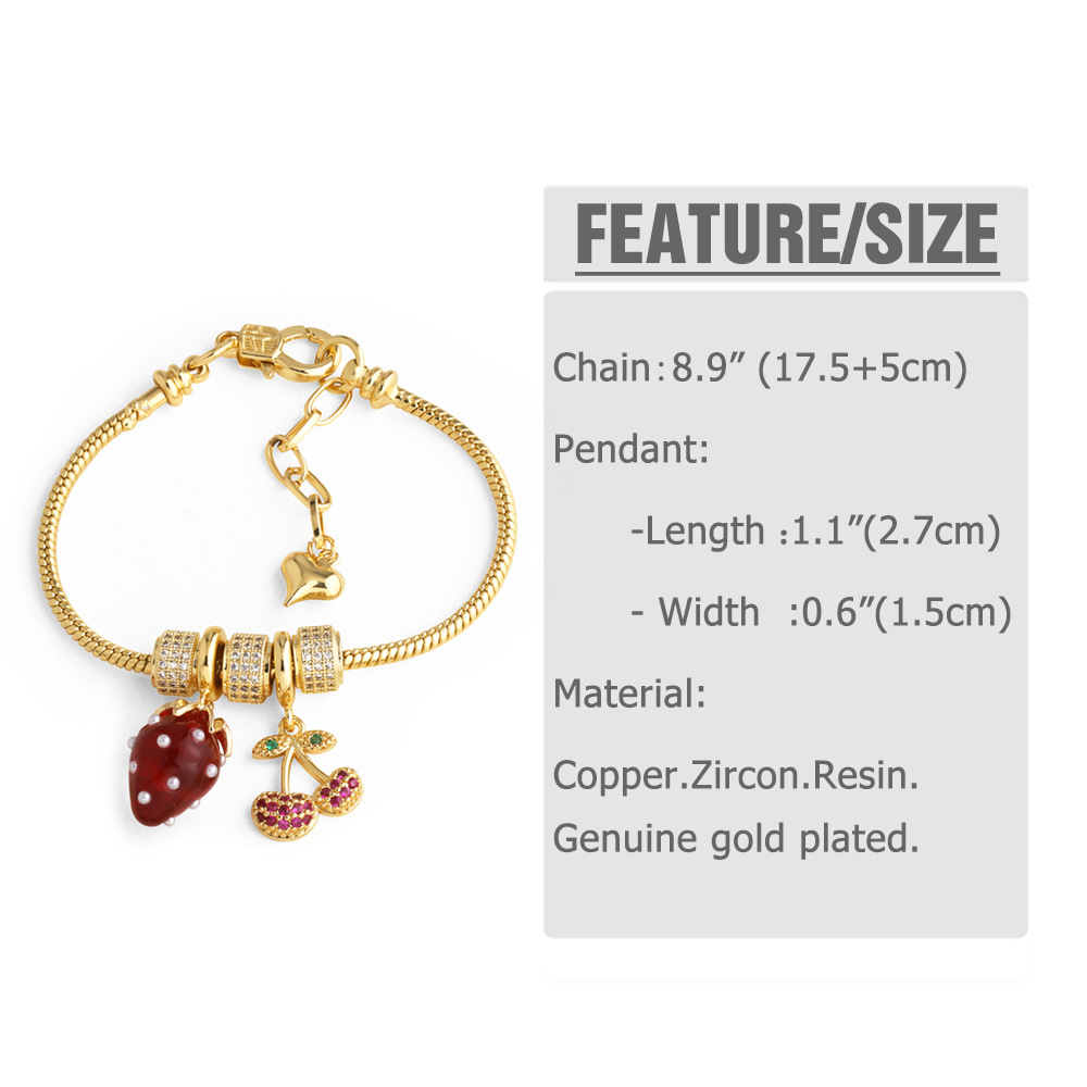 AS jewelry European and American copper plated real gold oil drop fruit cherry strawberry bracelet brm53 bracelet