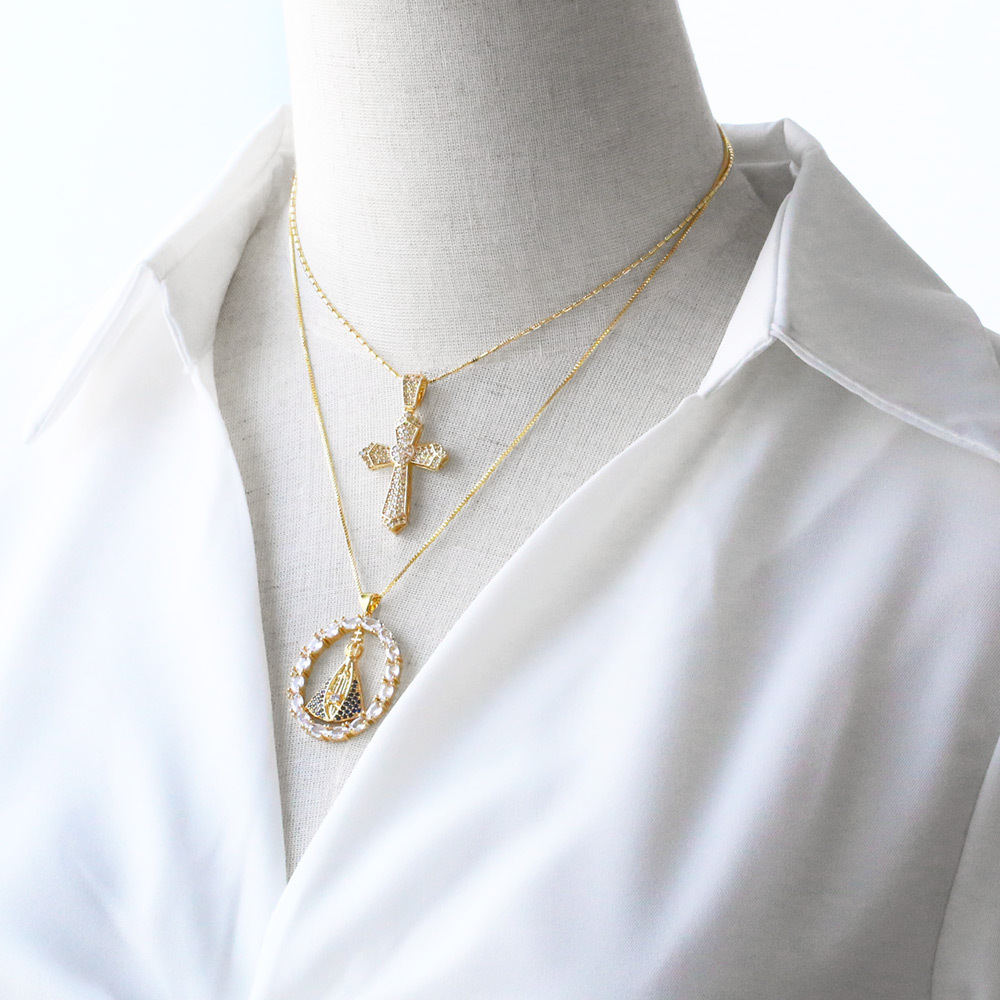 AS jewelry European and American cross Madonna pendant necklace gold-plated zircon clavicle chain nkb231