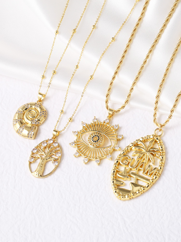 AS jewelry European and American fashion hot selling copper plated real gold eye tree of life pendant necklace clavicle chain nks90