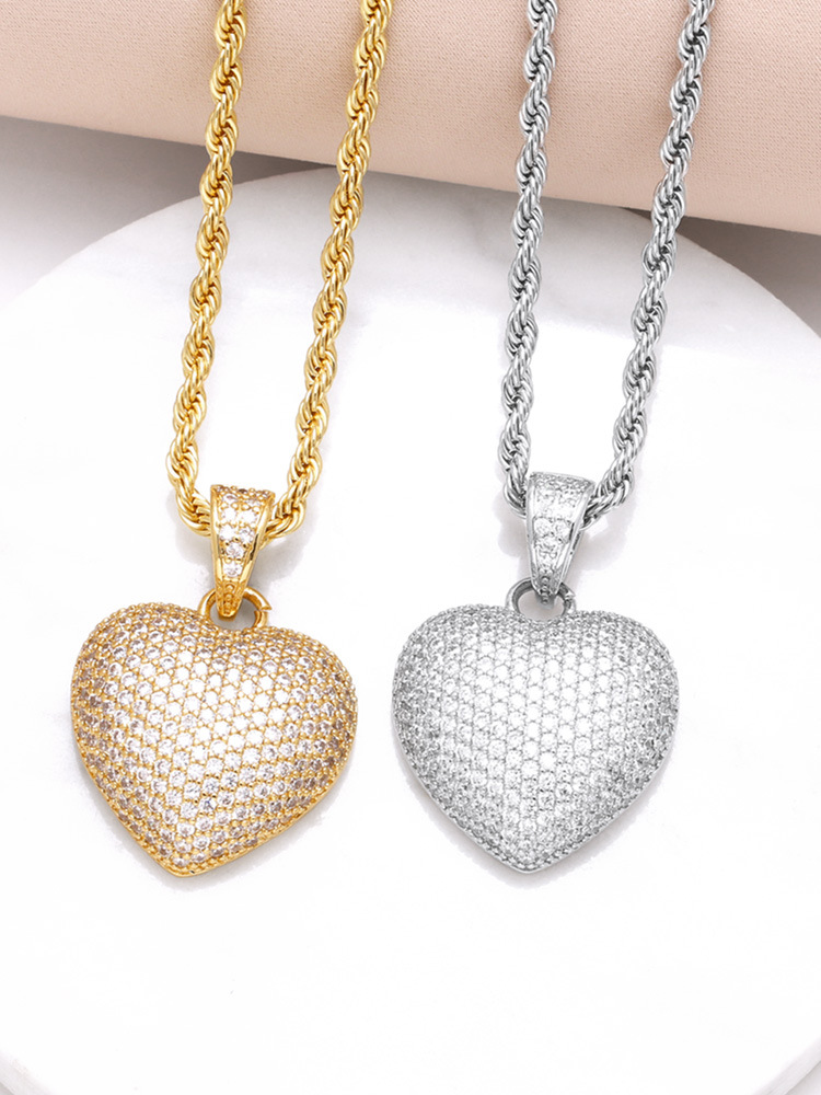 AS jewelry European and American fashion love full zircon pendant necklace female gold-plated hip-hop clavicle chain nkn89