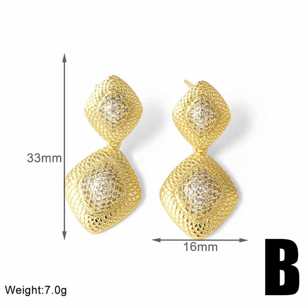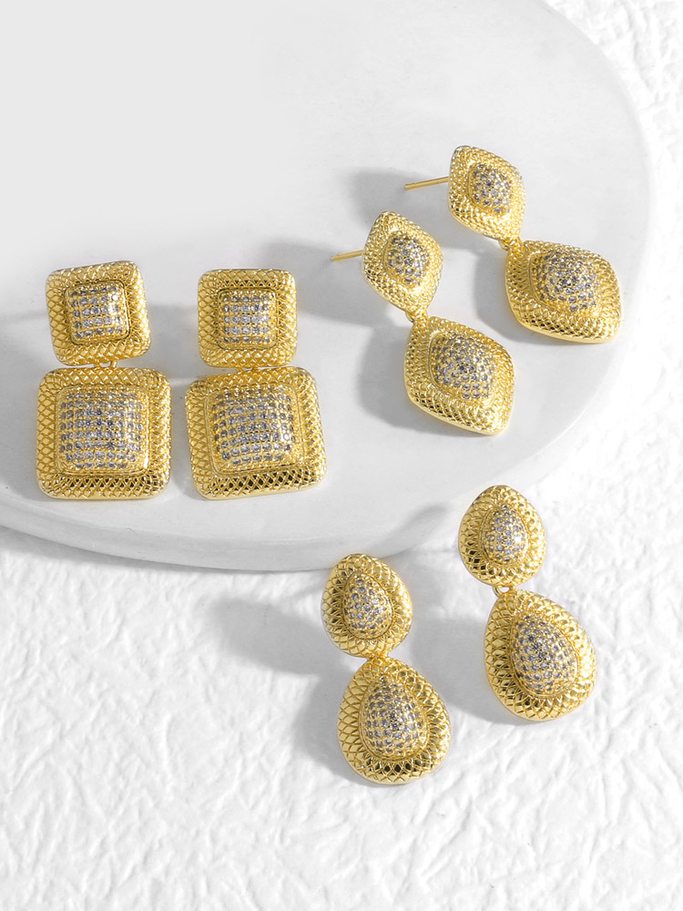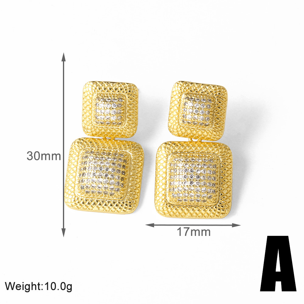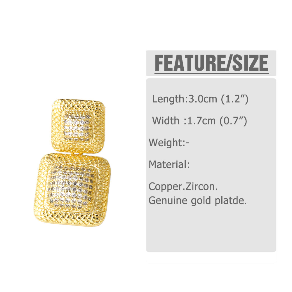 AS jewelry European and American hot retro water drop square full zircon earrings gold plated earrings earrings ery95