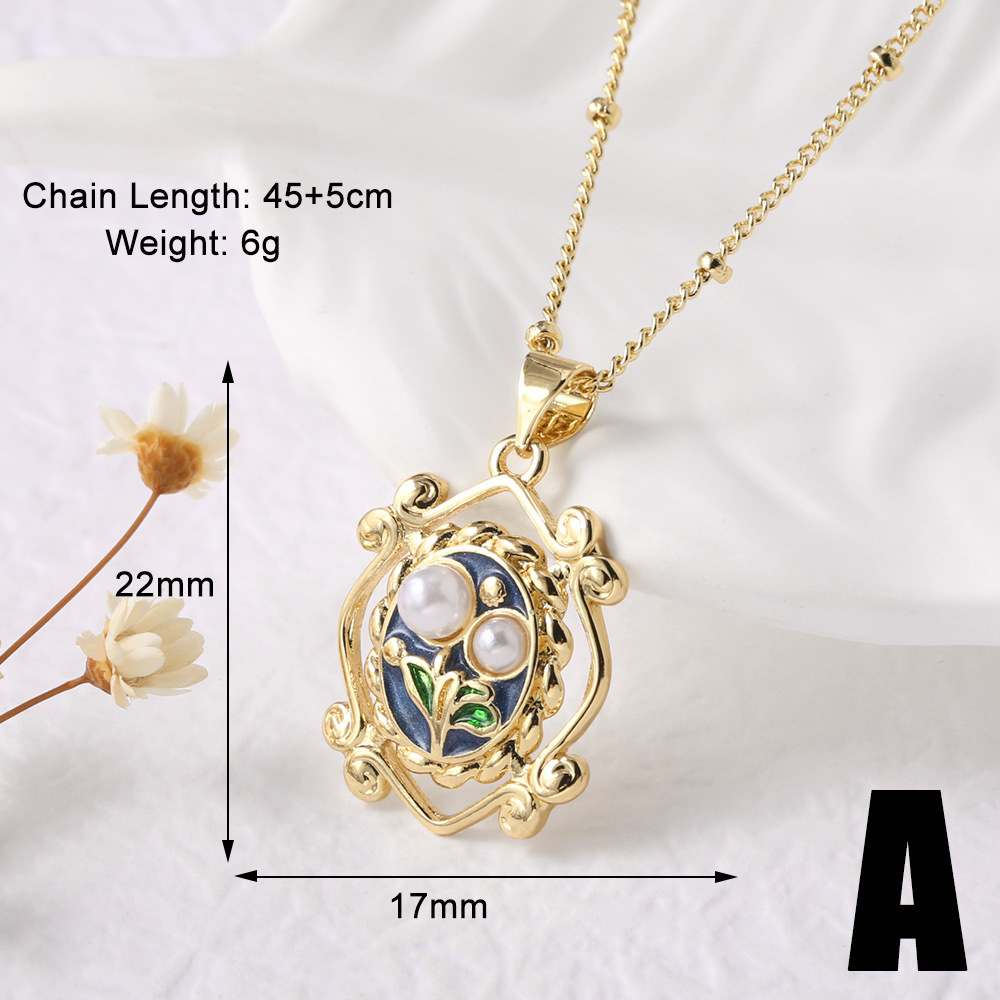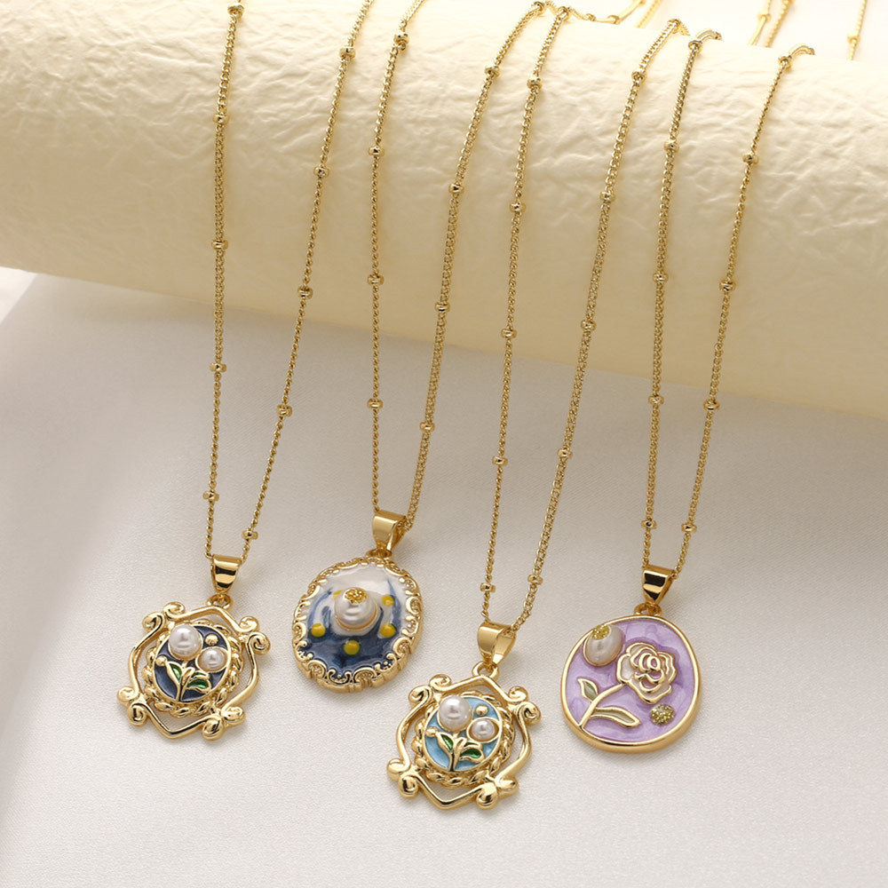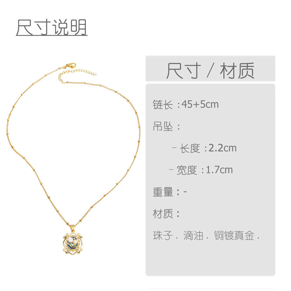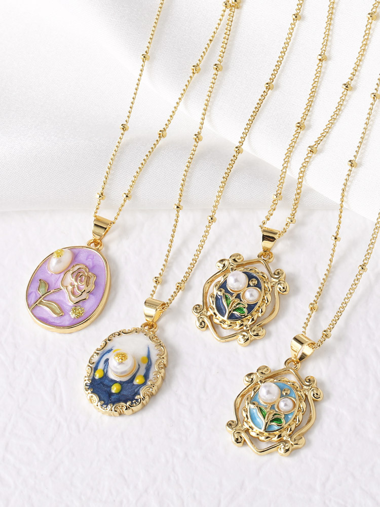 AS jewelry European and American French retro pearl oil painting pendant necklace gold-plated clavicle chain nkb623