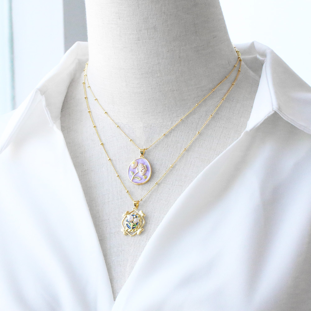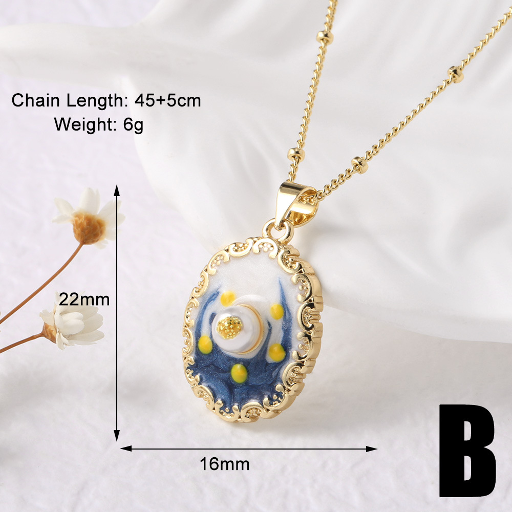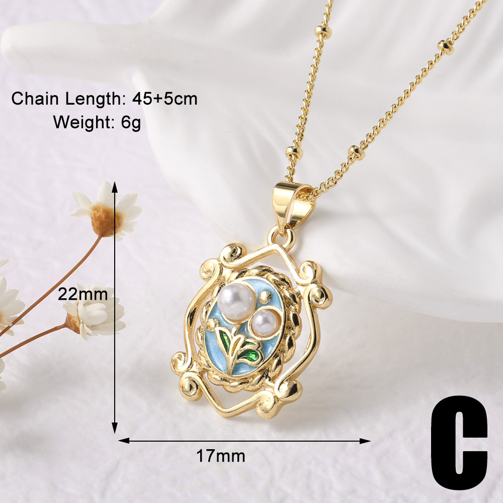 AS jewelry European and American French retro pearl oil painting pendant necklace gold-plated clavicle chain nkb623