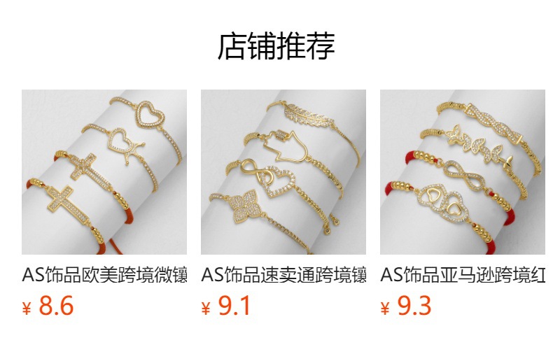 AS jewelry European and American micro-inlaid zircon cross bracelet love heart gold-plated bracelet female brc73
