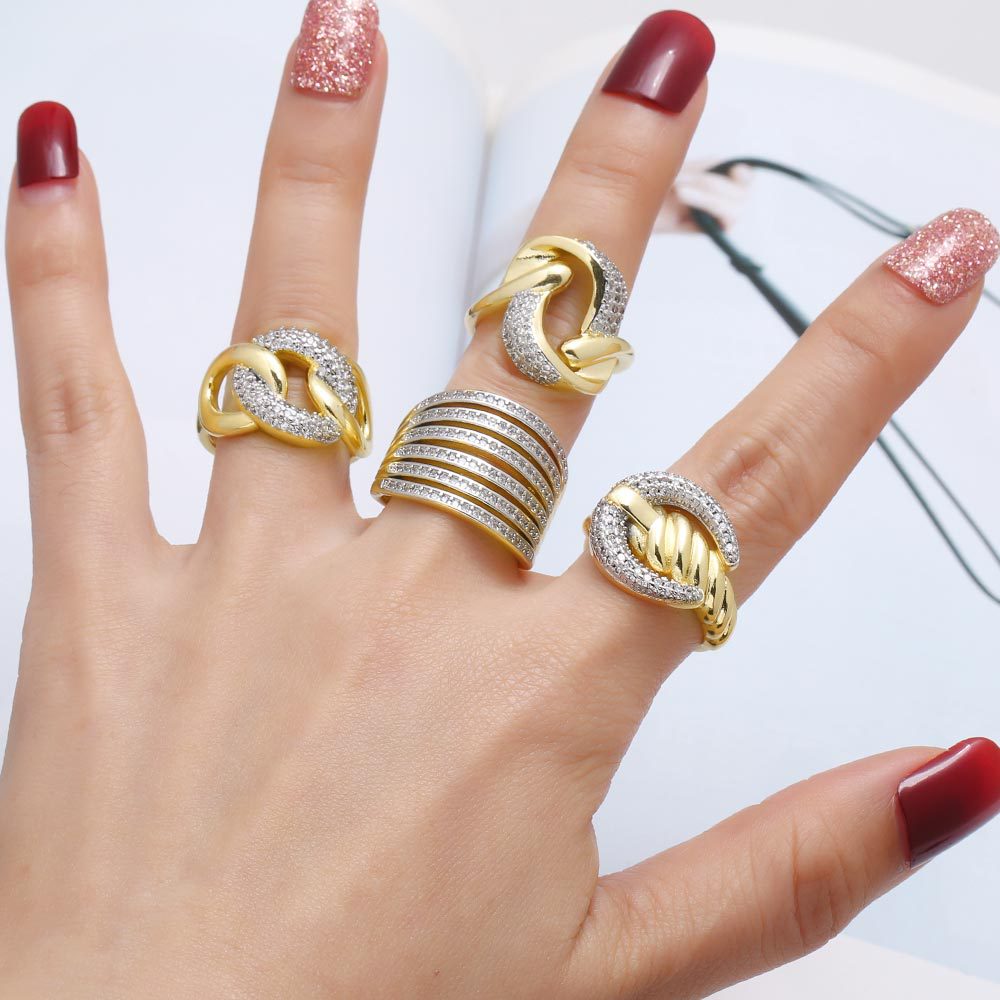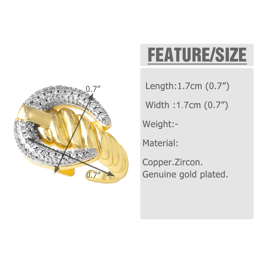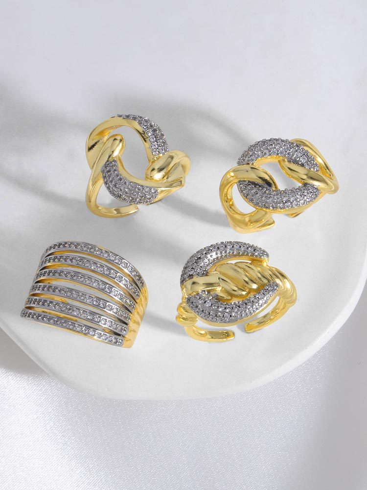 AS jewelry European and American full zircon fashion advanced two-color twist cross open gold-plated ring ris10