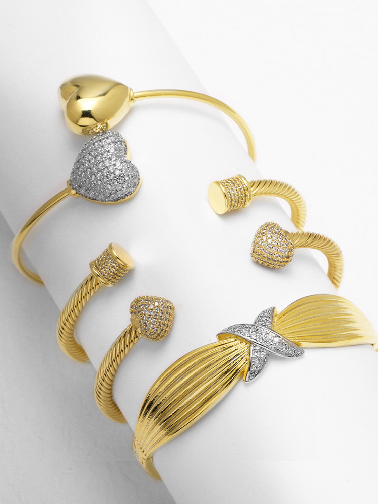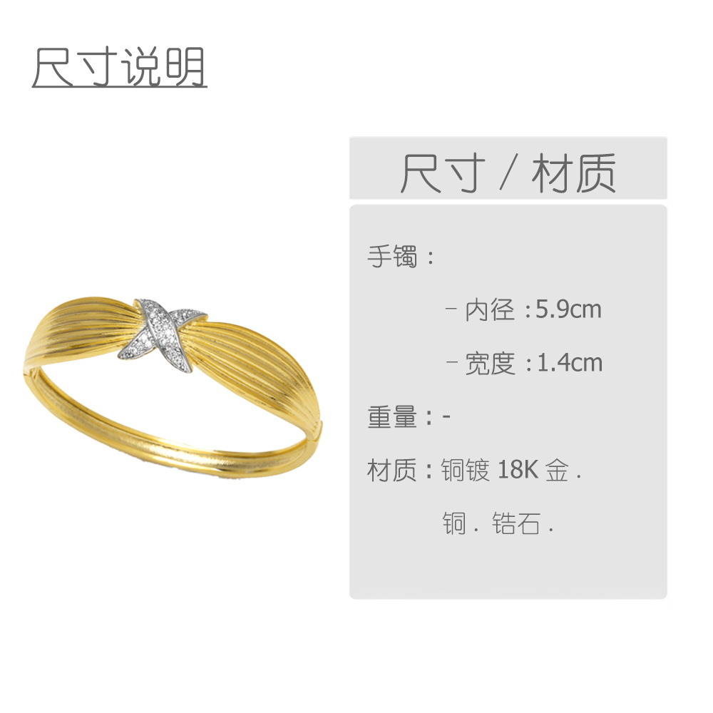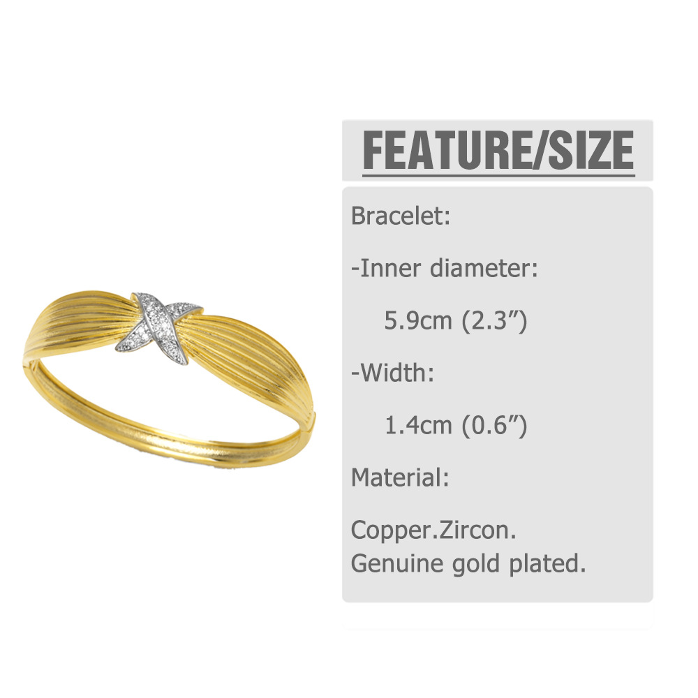AS jewelry European and American full zircon love two-color cross copper plated real gold bracelet bracelet bre84 bangle