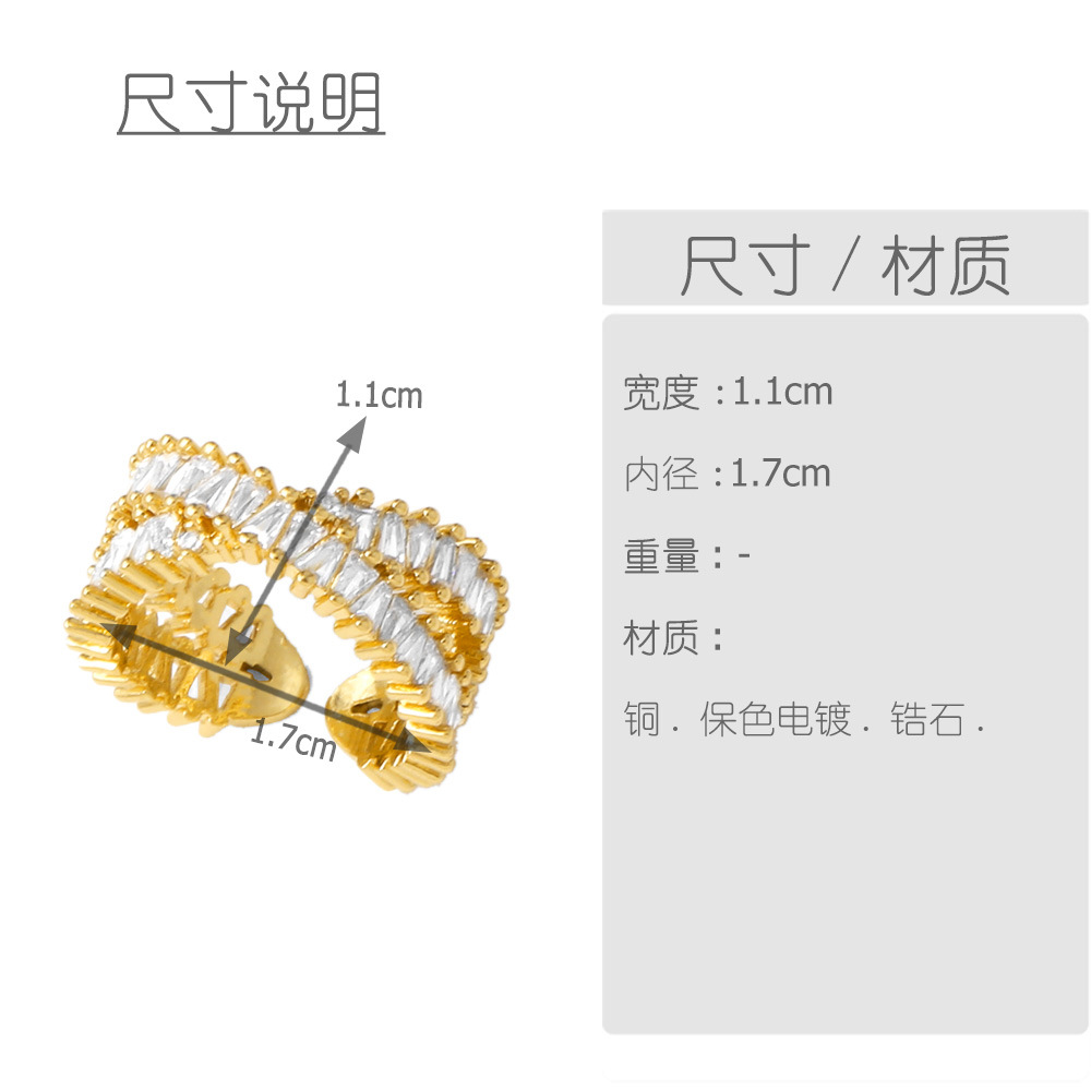 AS jewelry European and American geometric exaggerated high-end copper plated real gold inlaid zircon open ring female rih72