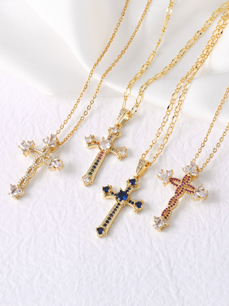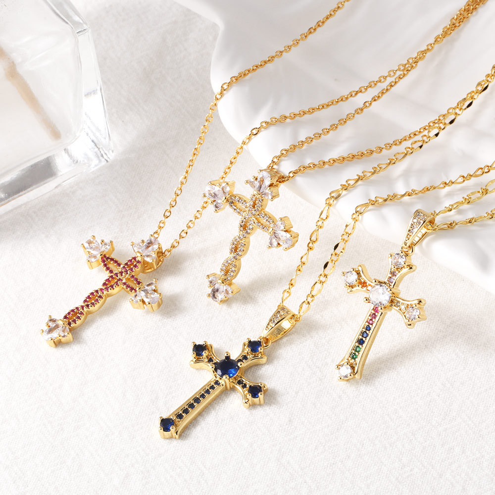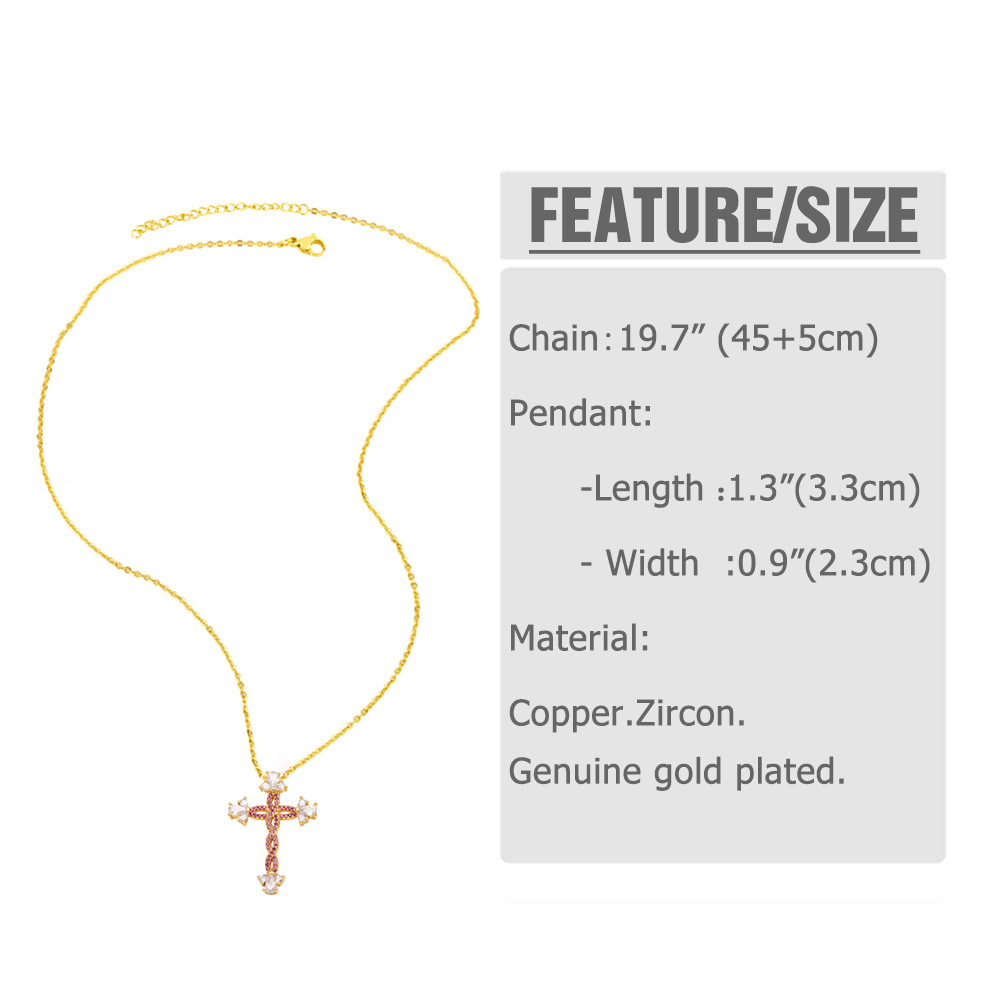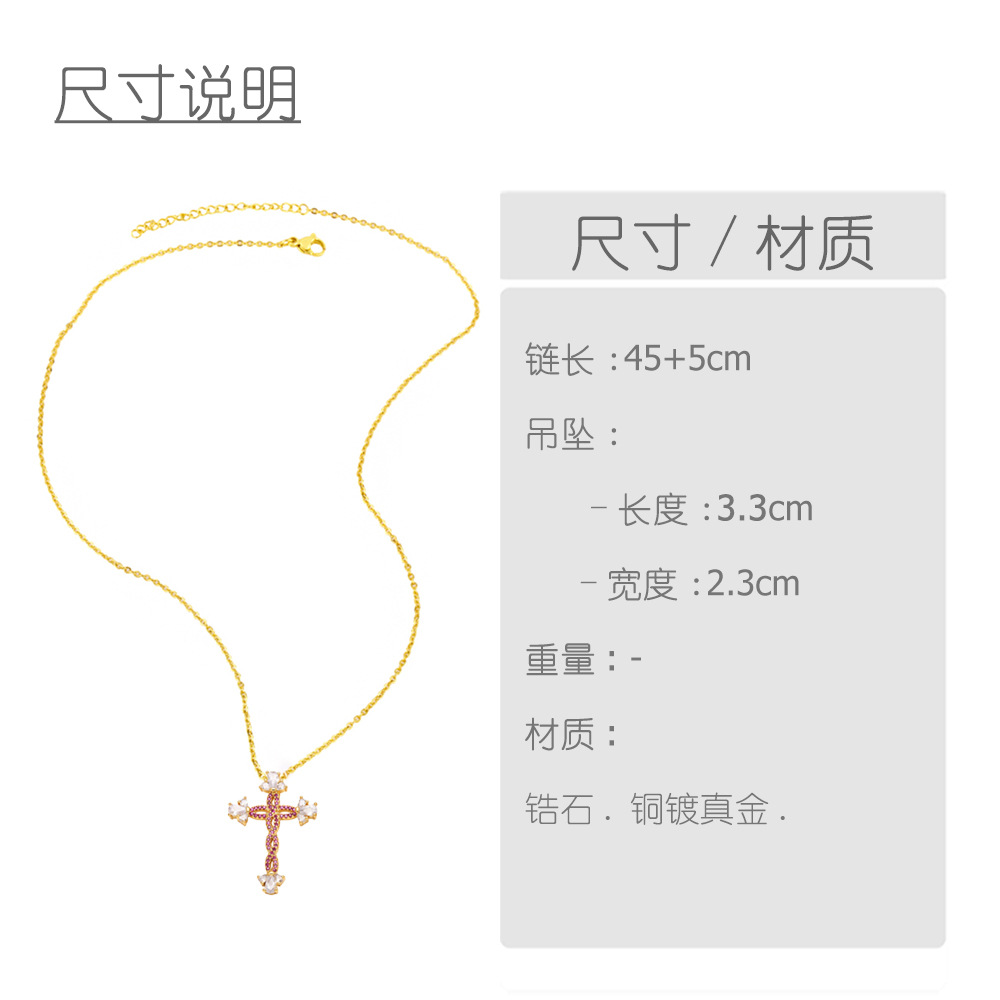 AS jewelry European and American hot cross pendant necklace retro copper plated 18k gold inlaid zircon clavicle chain nkt66