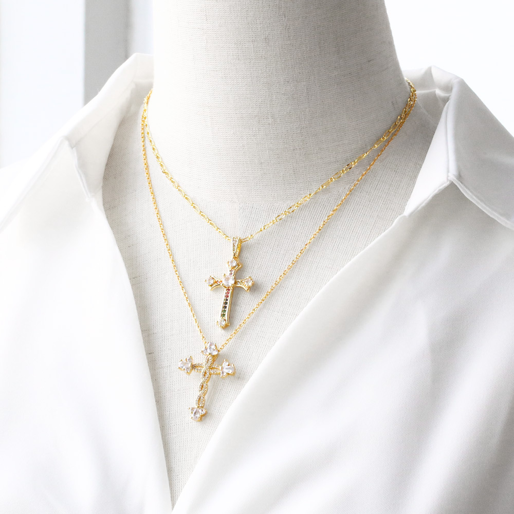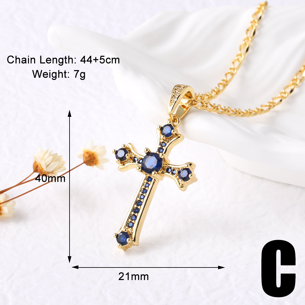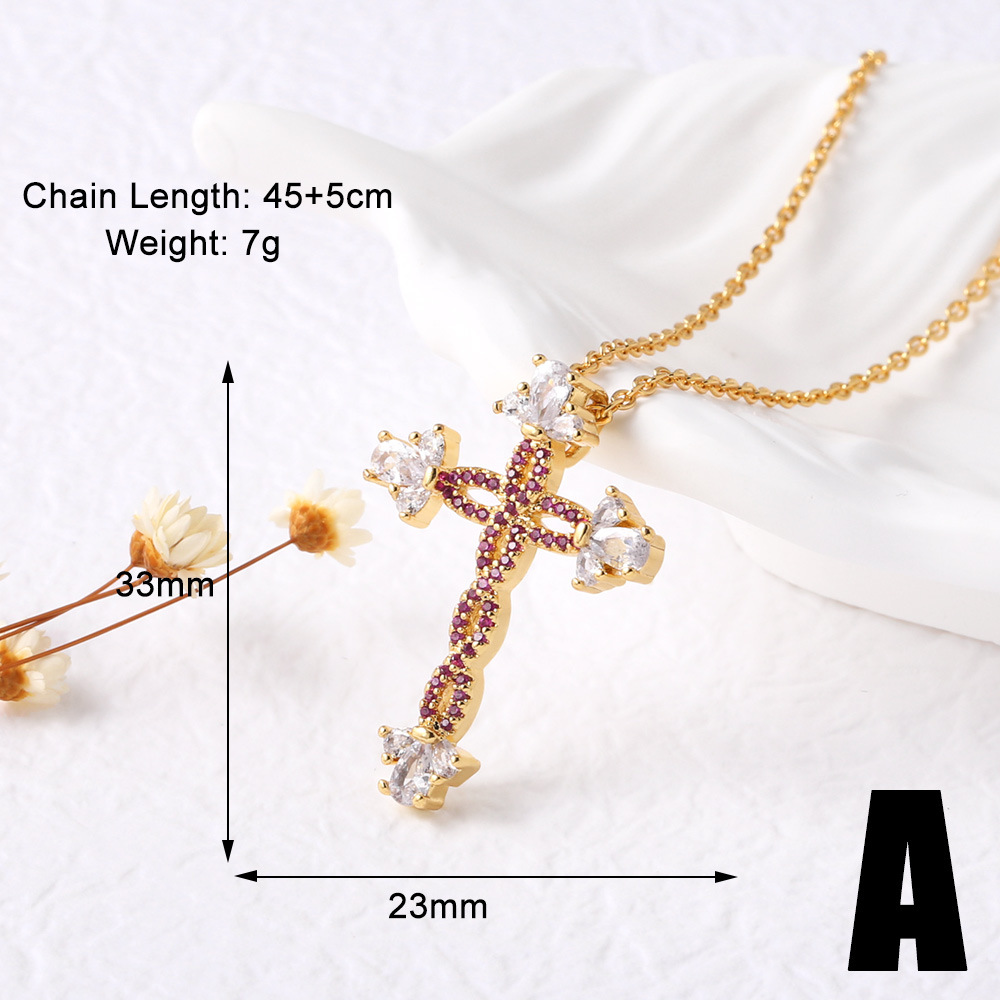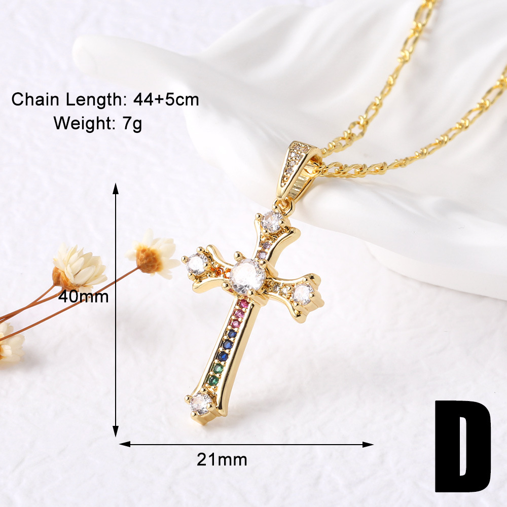AS jewelry European and American hot cross pendant necklace retro copper plated 18k gold inlaid zircon clavicle chain nkt66
