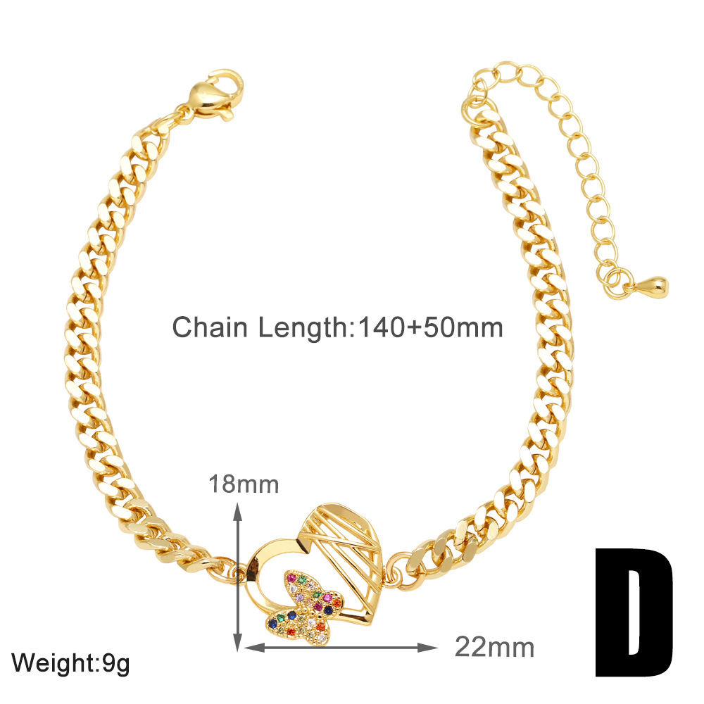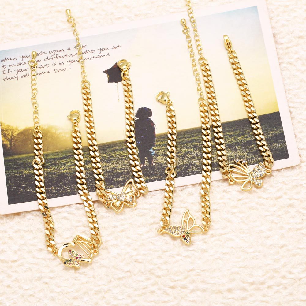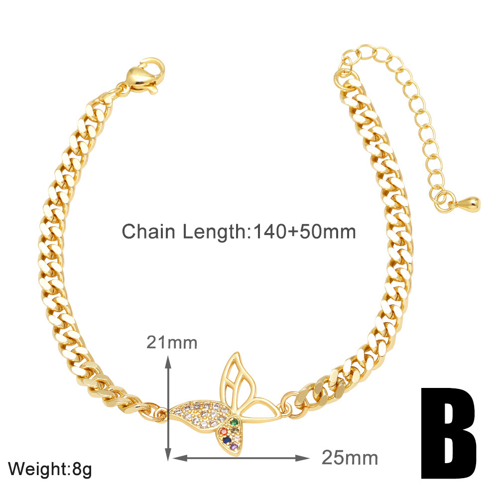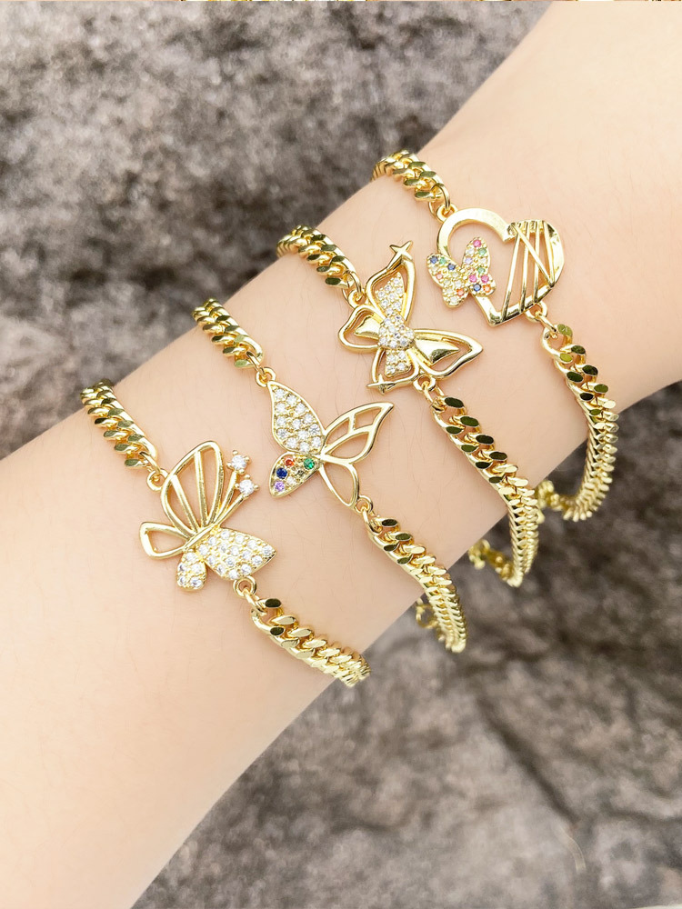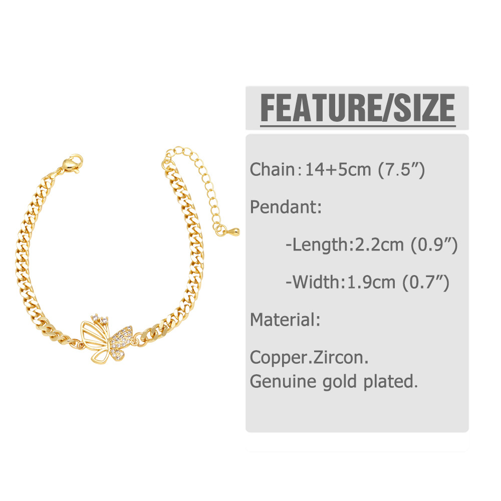 AS jewelry European and American hot selling butterfly pendant bracelet female copper plated real gold inlaid zircon hand jewelry bracelet brc78