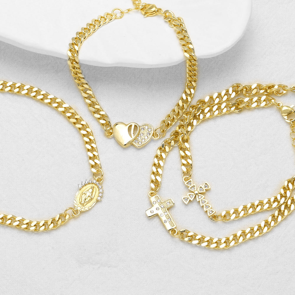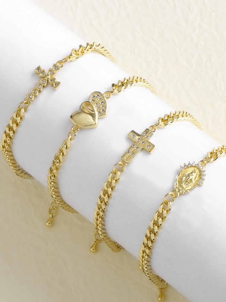 AS jewelry European and American hot-selling copper plated 18k gold inlaid zircon cross Madonna pendant bracelet hand jewelry bra18