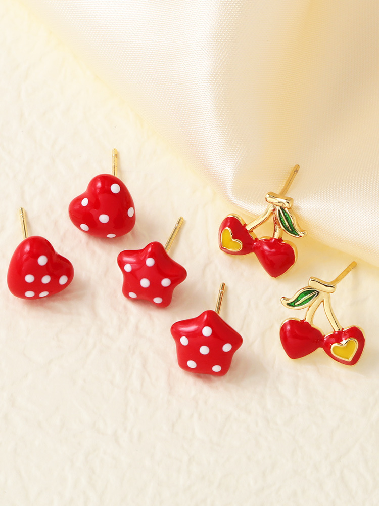 AS jewelry European and American hot-selling copper plated 18k gold oil drop fruit cherry star earrings era006