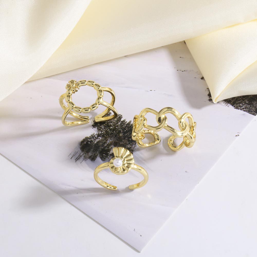 AS jewelry European and American hot-selling copper-plated 18k gold pearl irregular open ring ring rik05