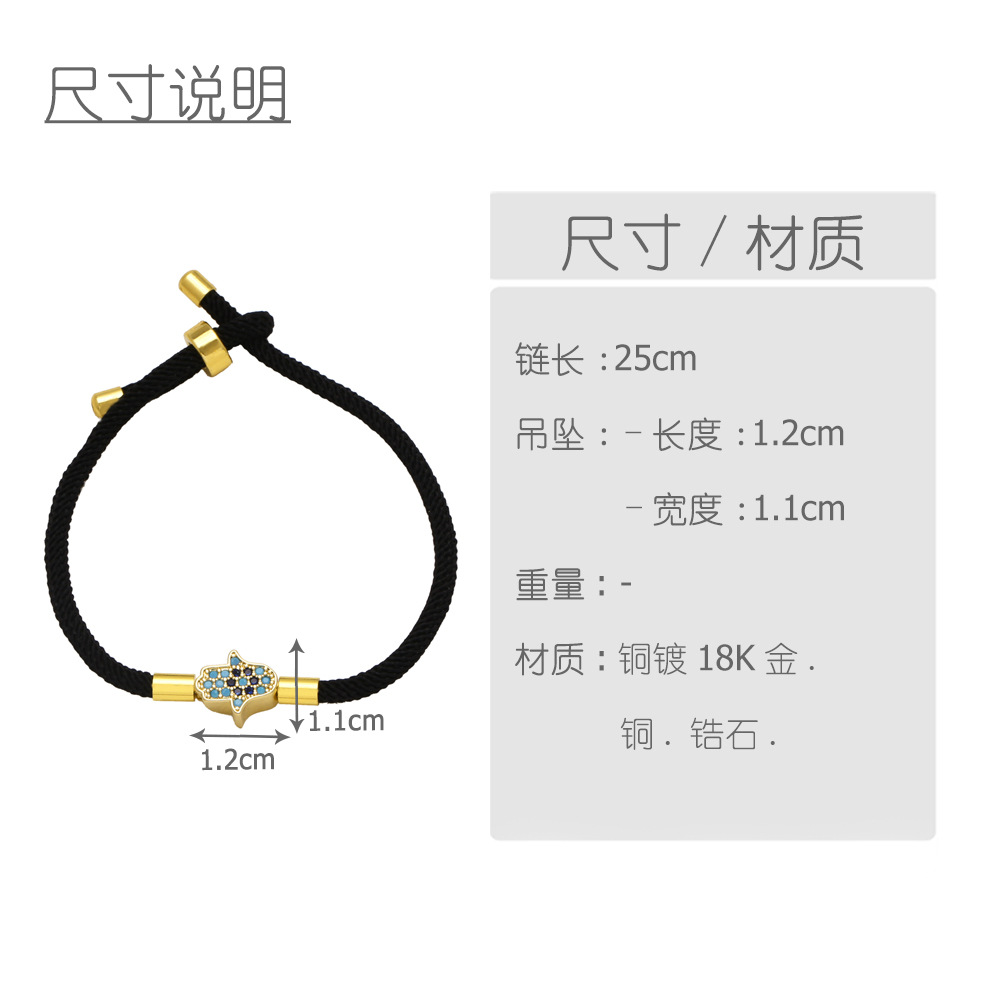 AS jewelry European and American hot selling love palm copper plated 18k gold pendant adjustable bracelet hand rope female bra34