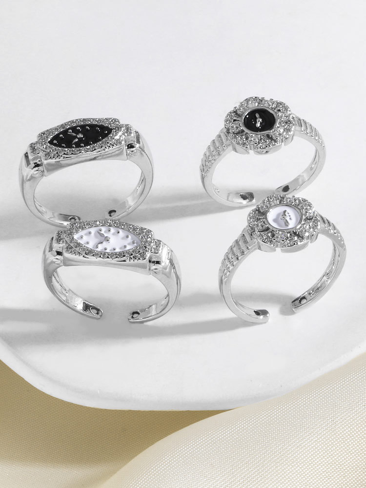 Classic four-claw imitation zircon micro-inlaid ring women's double row two-color twist arm ring engagement wedding ring women
