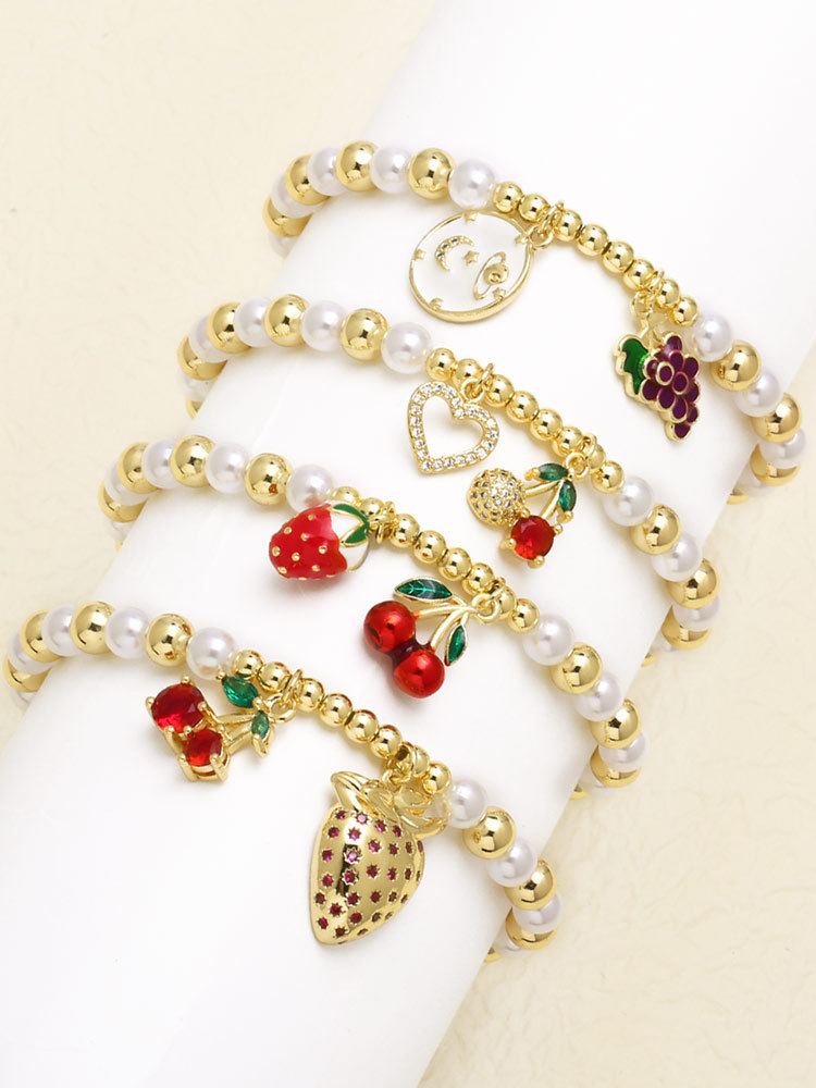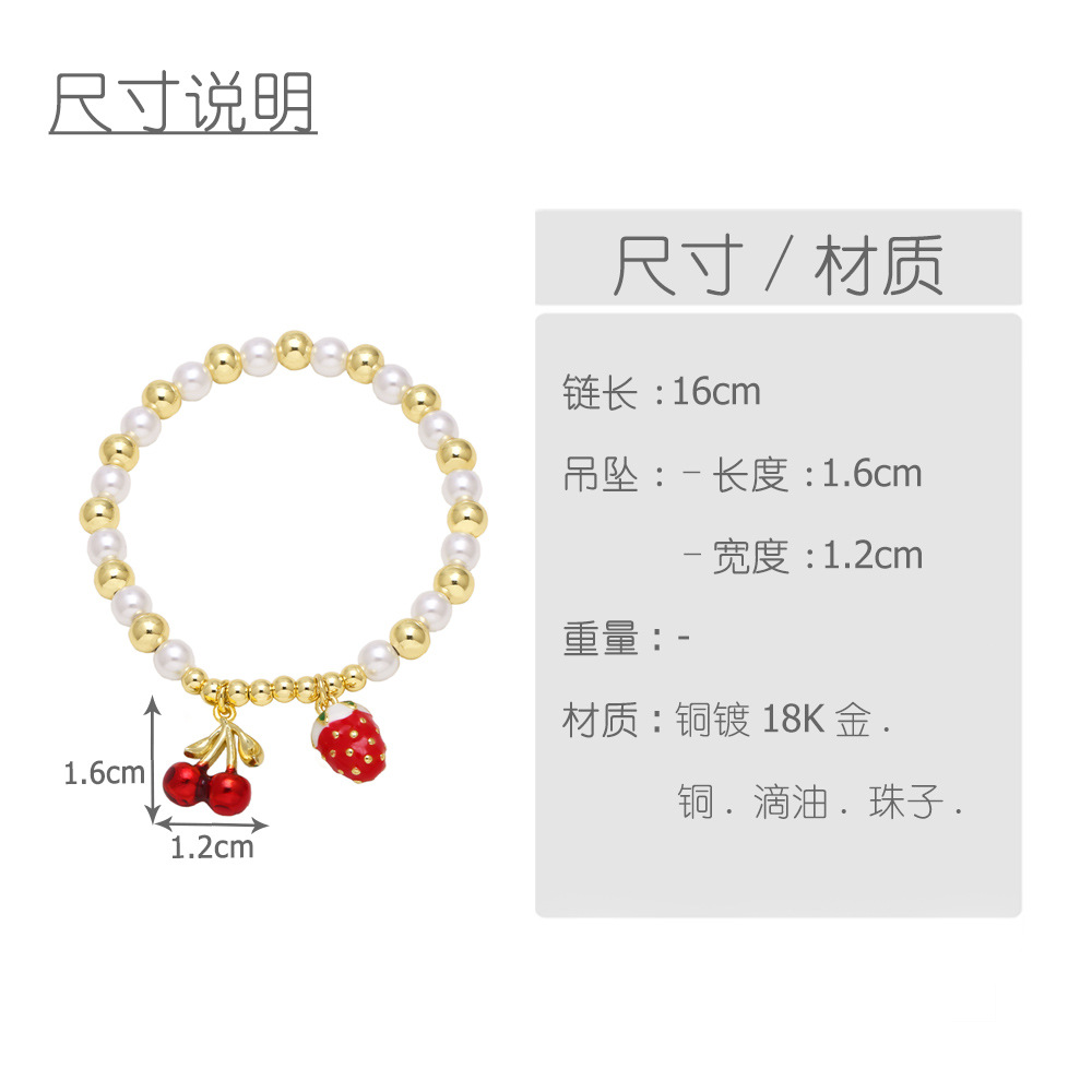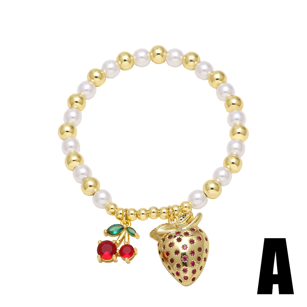 AS jewelry European and American hot-selling pearl fruit cherry strawberry pendant bracelet gold-plated bracelet brm81