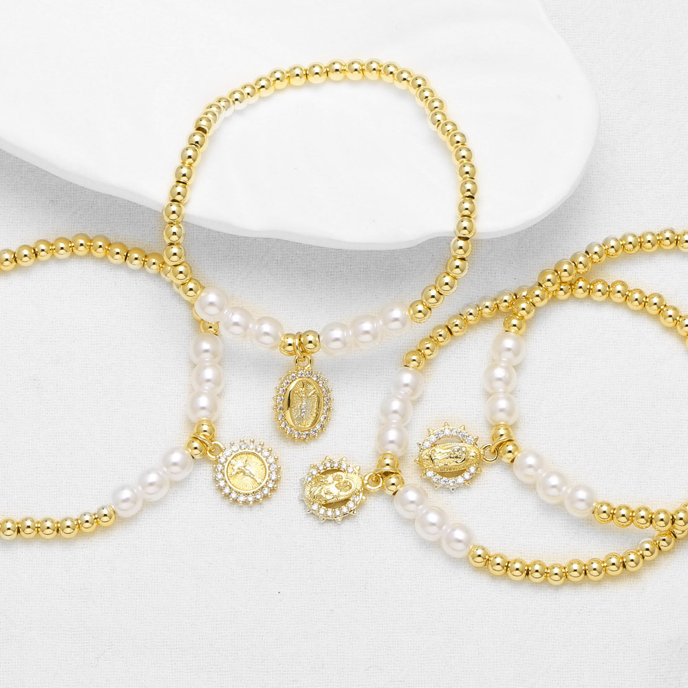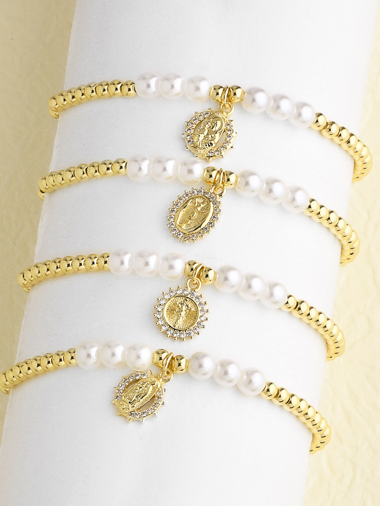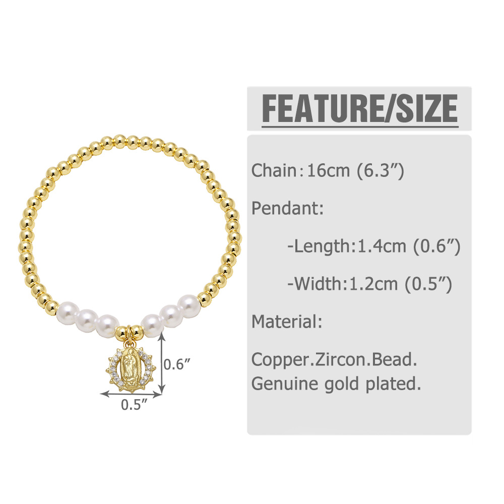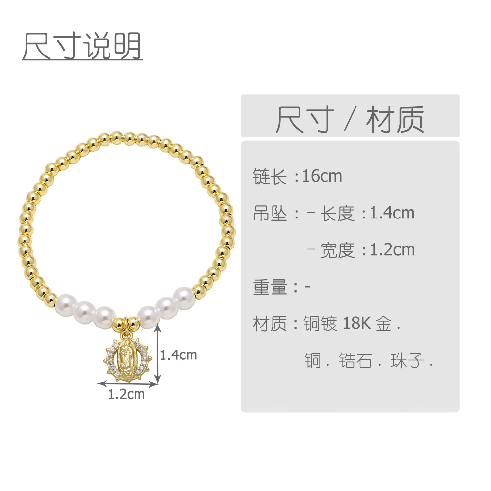 AS jewelry European and American hot-selling retro copper plated 18k gold Virgin Mary pearl bracelet bracelet female bra58