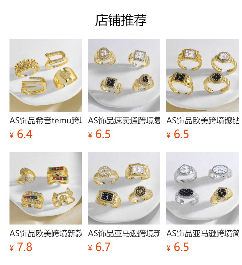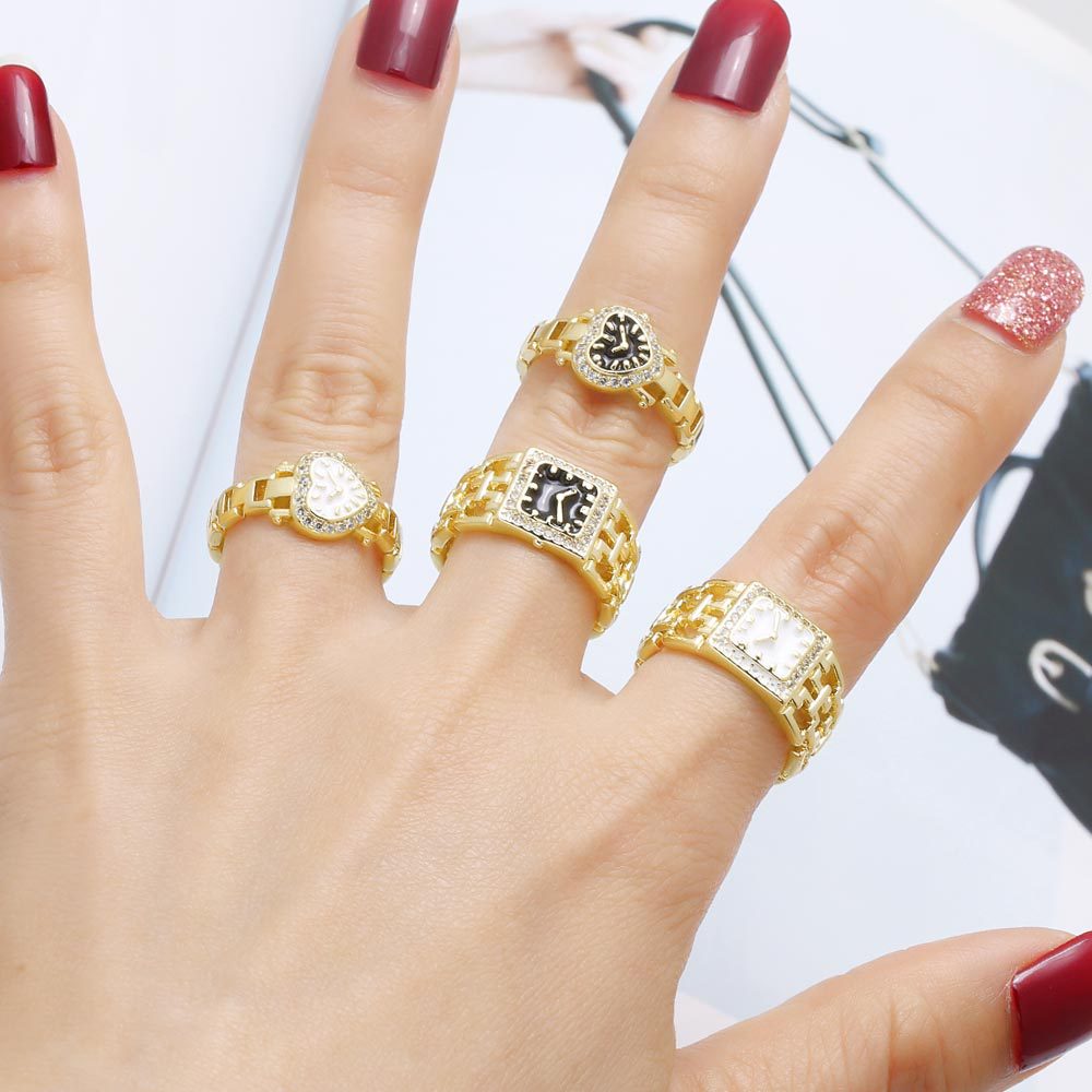 AS jewelry European and American hot-selling watch ring clock copper plated 18k gold open ring female rir38 ring