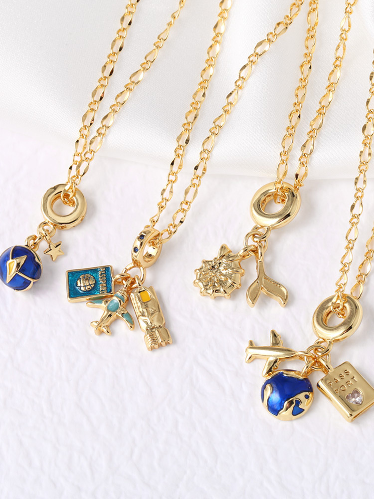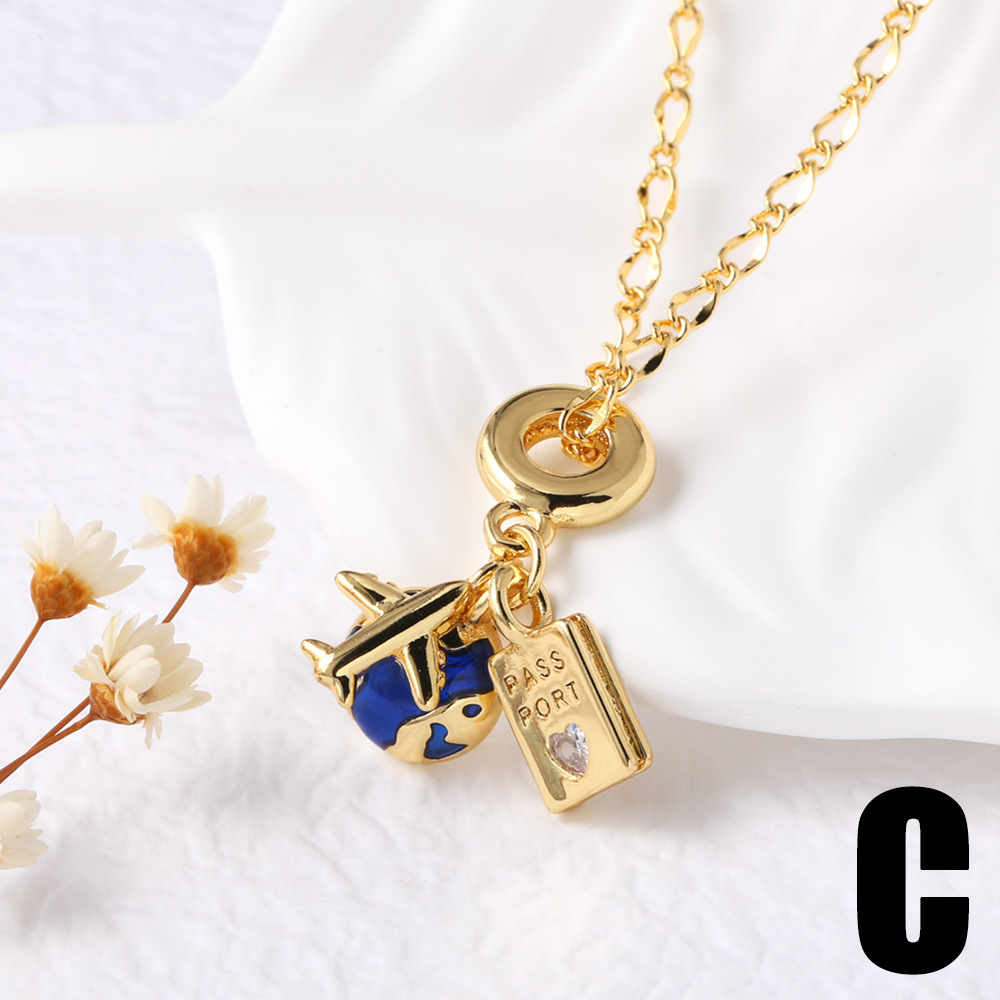 AS jewelry European and American hot style airplane passport pendant necklace female gold-plated earth necklace clavicle chain nkb360