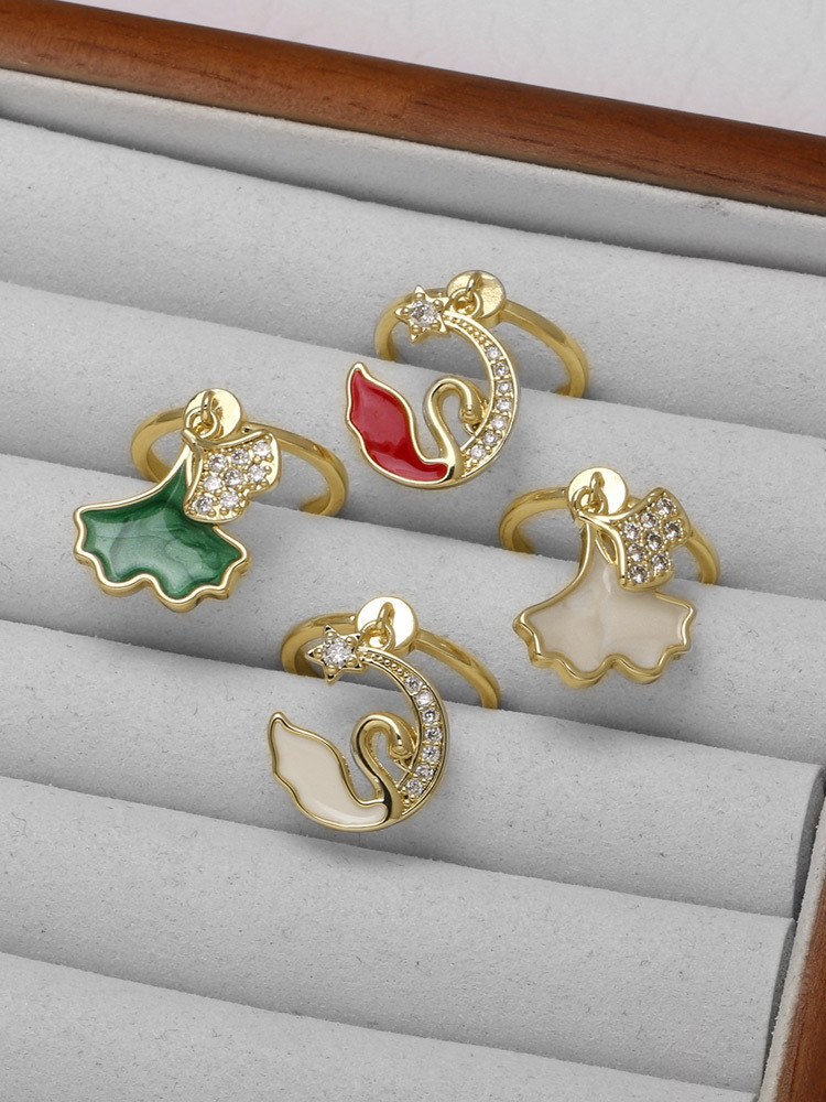AS jewelry European and American hot style inlaid zircon oil maple leaf open ring copper gold-plated ring rij82 ring