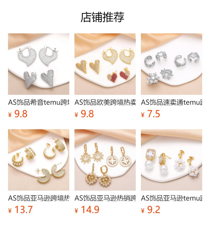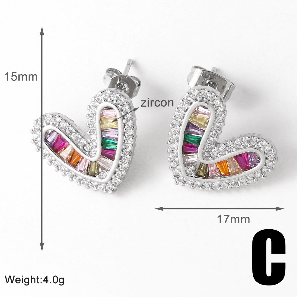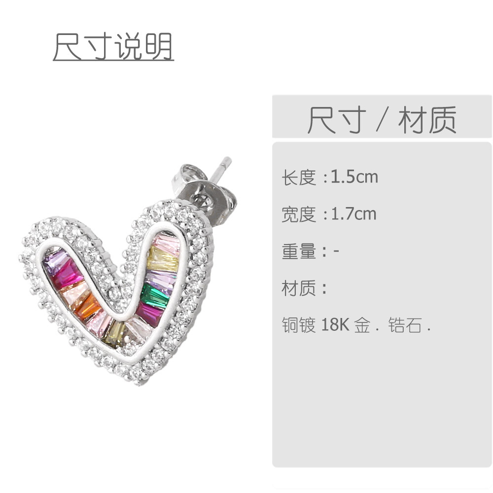 AS jewelry European and American love earrings for women inlaid with colored zircon ear buckles gold-plated heart-shaped earrings era355