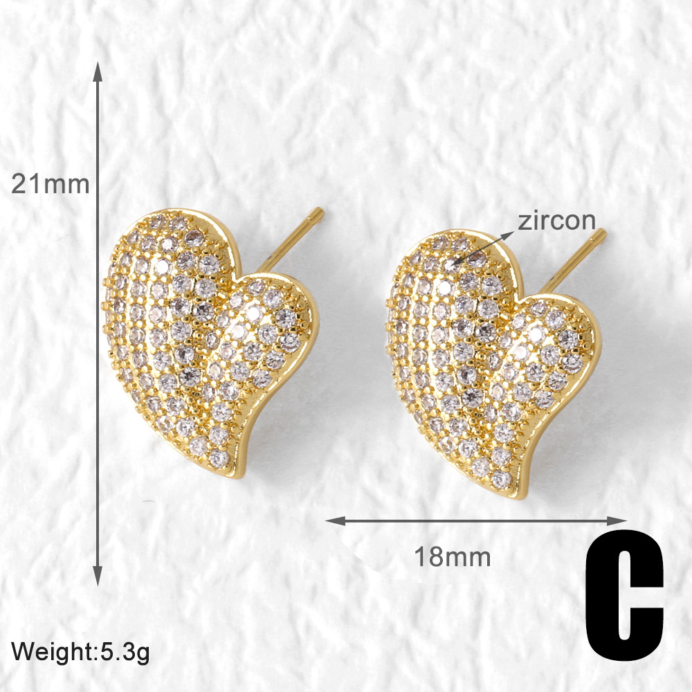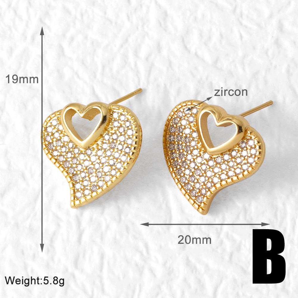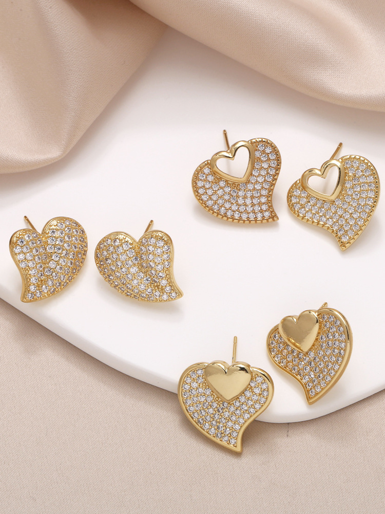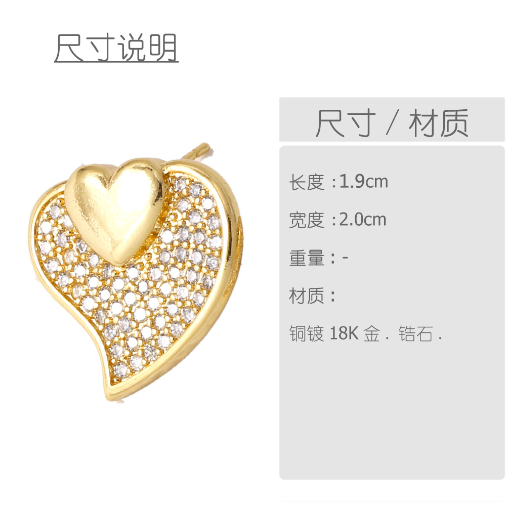AS jewelry European and American love full zircon earrings high-end gold-plated peach heart earrings era065