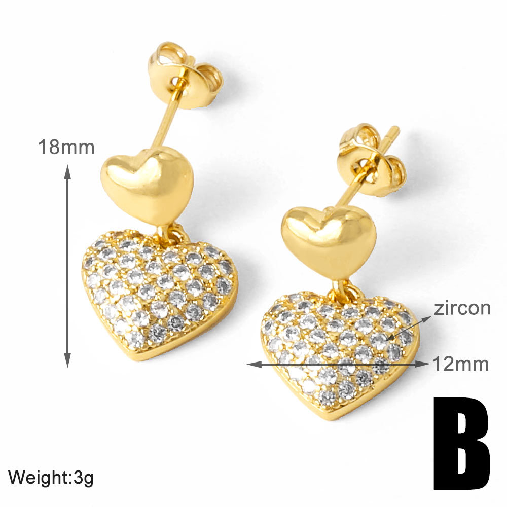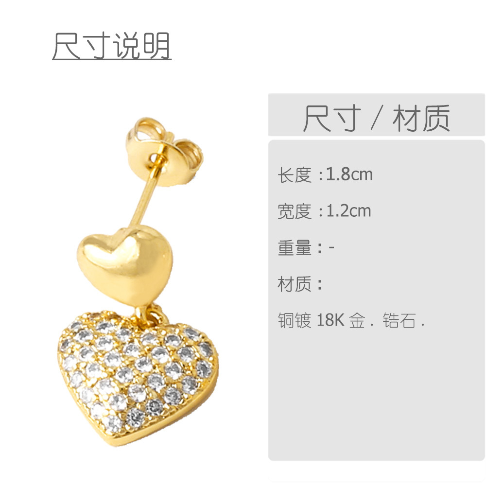 AS jewelry European and American love heart pendant earrings female gold-plated full zircon heart-shaped earrings earrings erq66