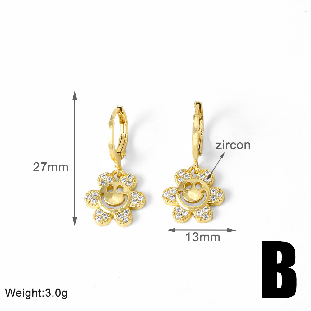 AS jewelry European and American love heart pendant earrings gold-plated sunflower smiley face inlaid zircon earrings era382