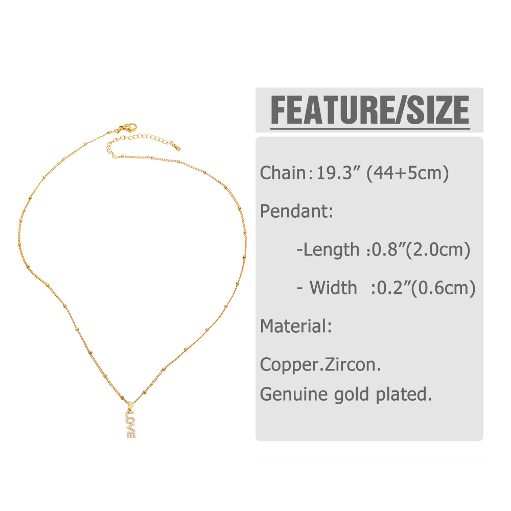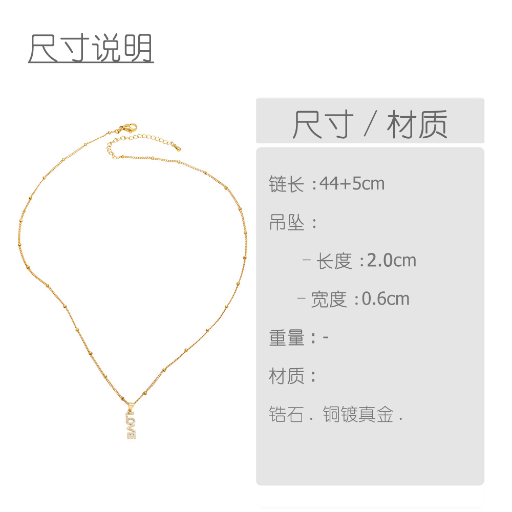 AS jewelry 26 English letters necklace female copper plated real gold inlaid zircon clavicle chain nky42