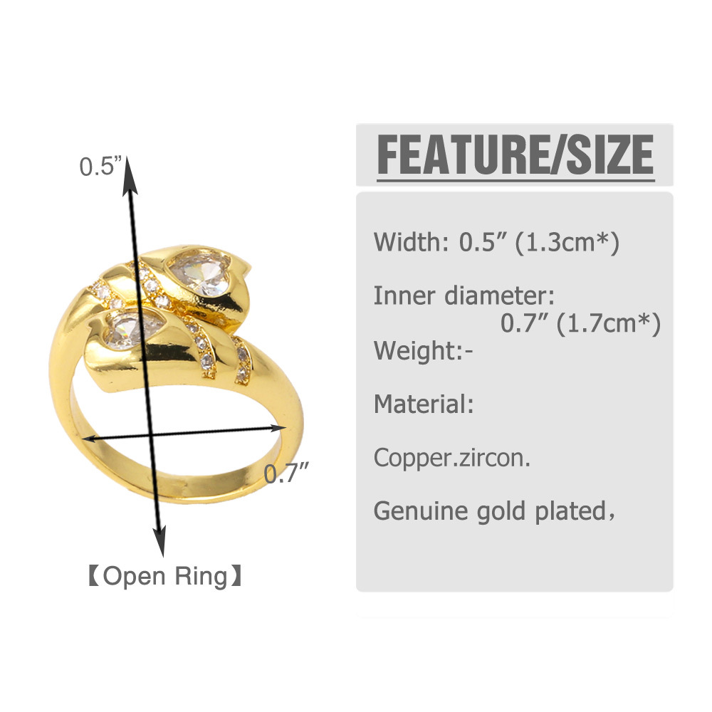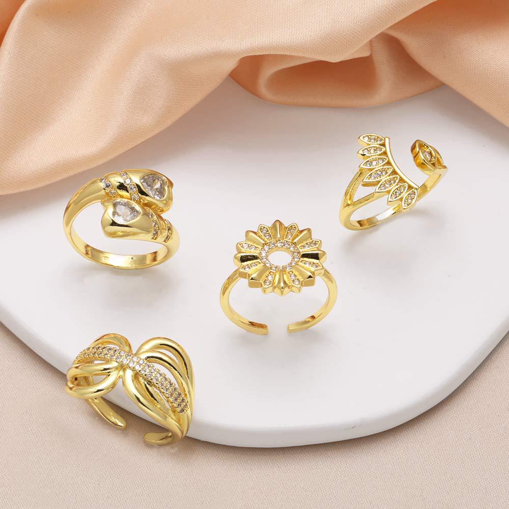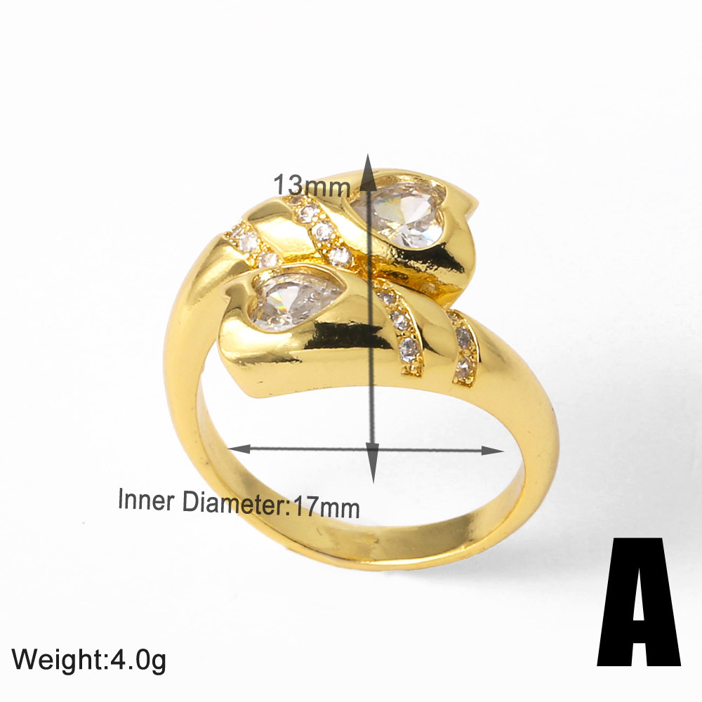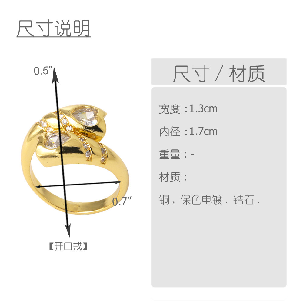 AS jewelry European and American love open ring female copper plated 18k gold heart-shaped zircon flower ring rih10