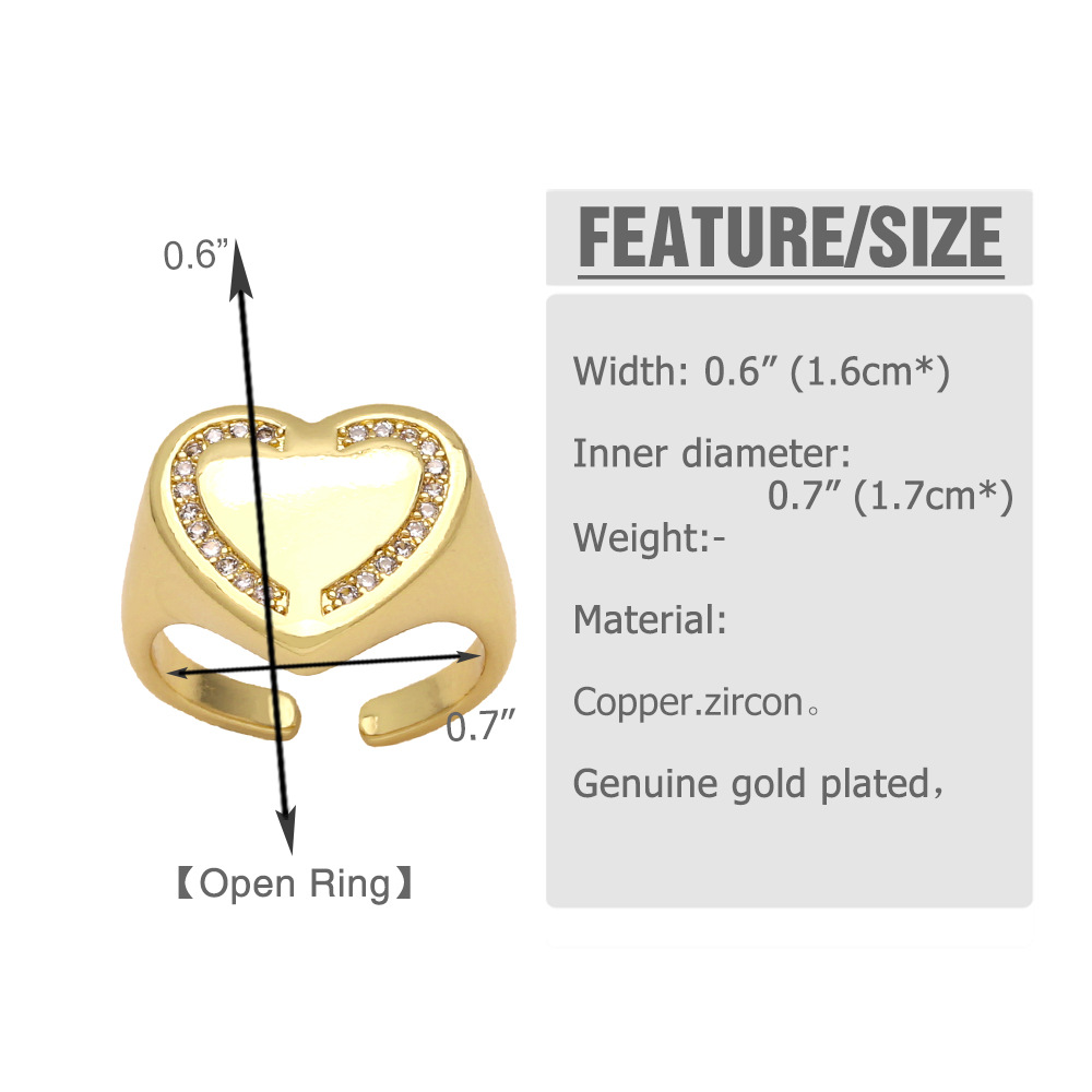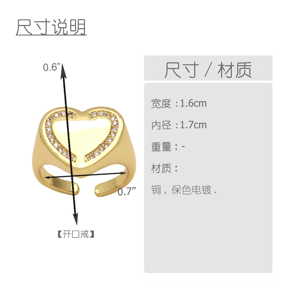 AS jewelry European and American love ring female inlaid zircon copper plated gold polished open ring rin21