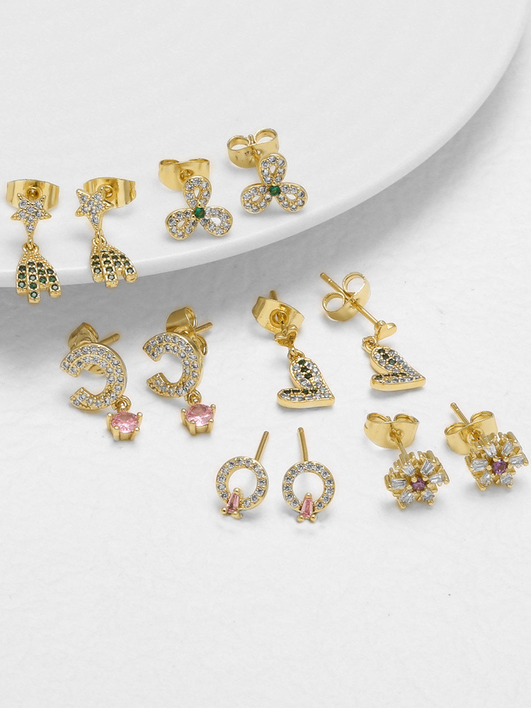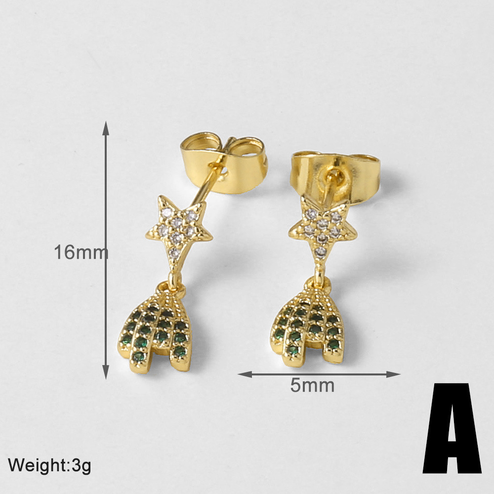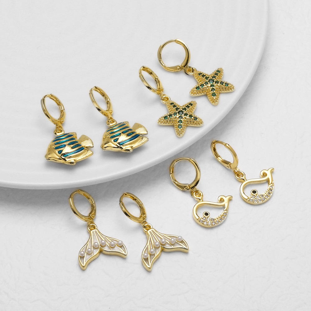 Jewelry copper plated real gold starfish whale earrings micro inlaid zircon fishtail earrings earrings erz86