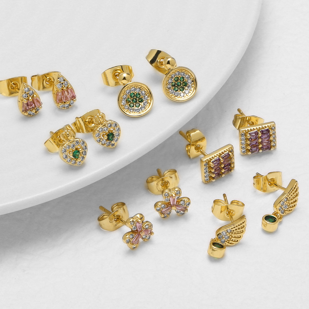 AS jewelry micro-inlaid zircon earrings copper plated 18k gold love heart earrings earrings female ery08